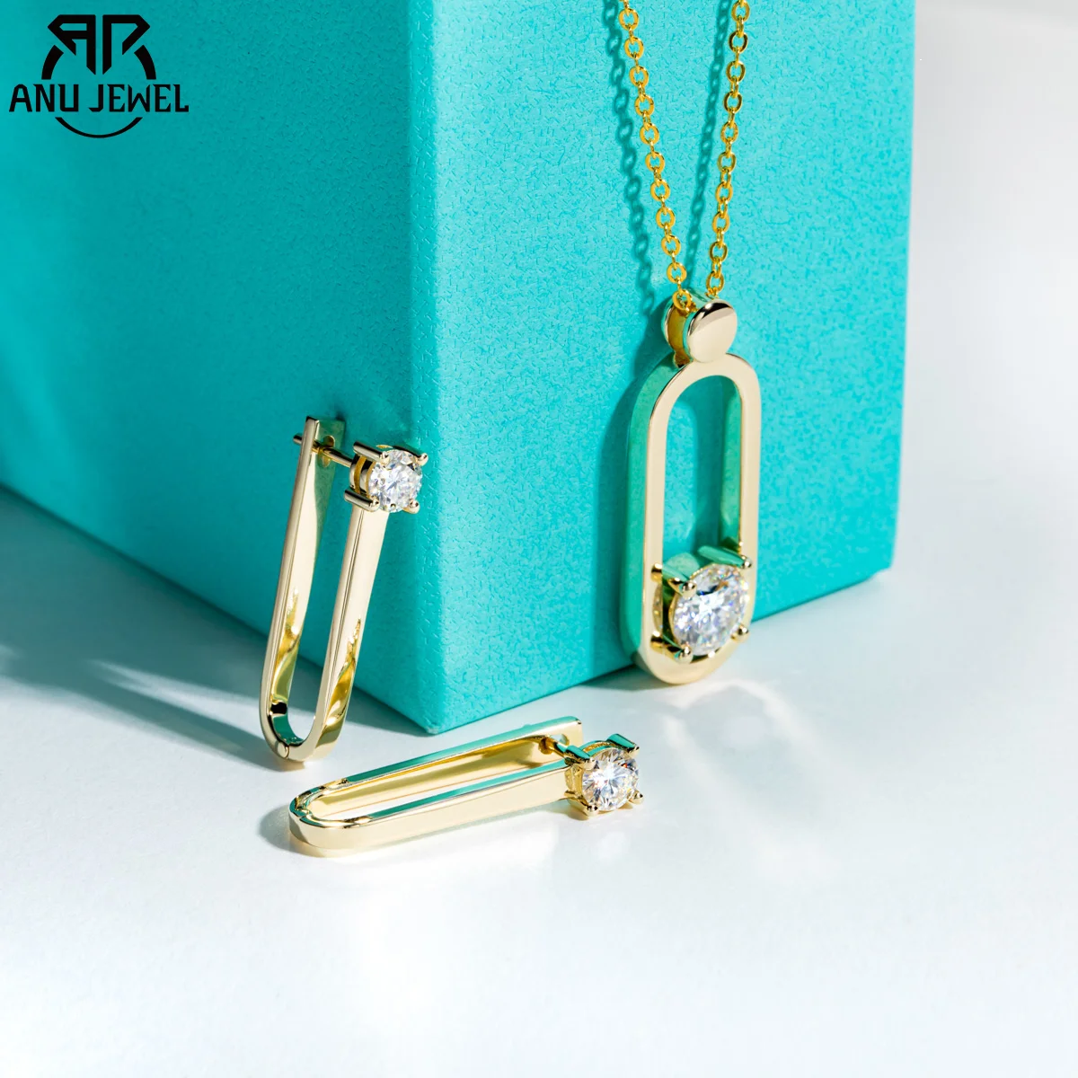 AnuJewel 2ct D Color Moissanite Pin Necklace Yellow Gold Plated Jewelry Set Moissanite Pin Earrings ...