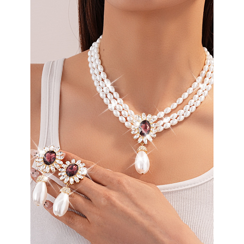 Women's Pearl Crystal Teardrop Jewelry Set - Elegant Multi-Layer Ne...