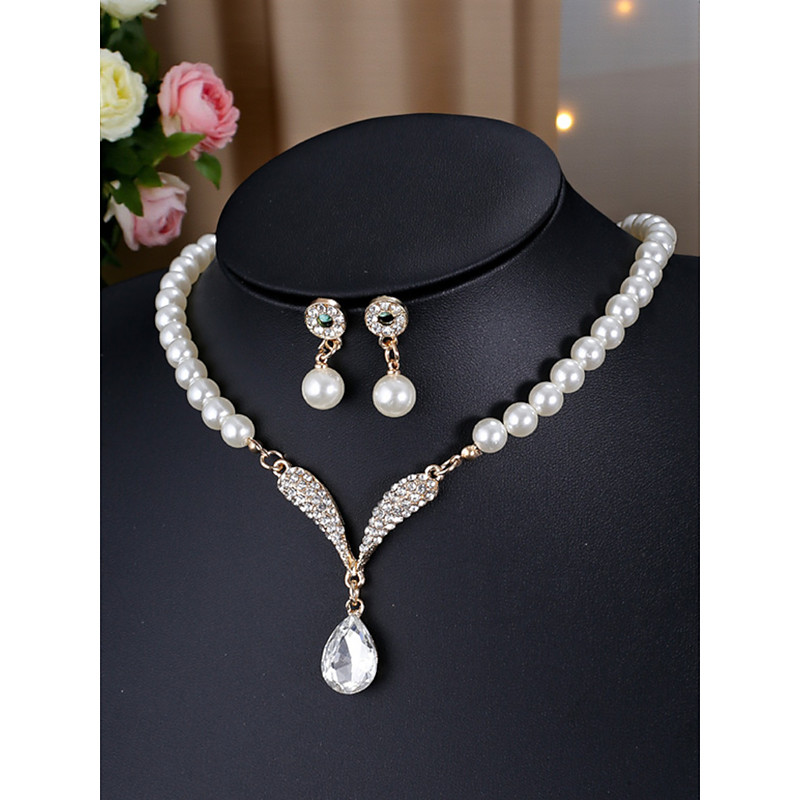 Women's Pearl Rhinestone Jewelry Set for Party - Elegant Crystal Te...