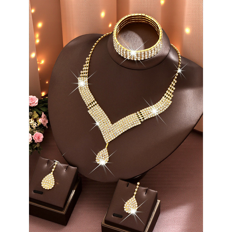 Women's Gold Rhinestone Jewelry Set - Sparkling Teardrop Necklace, ...