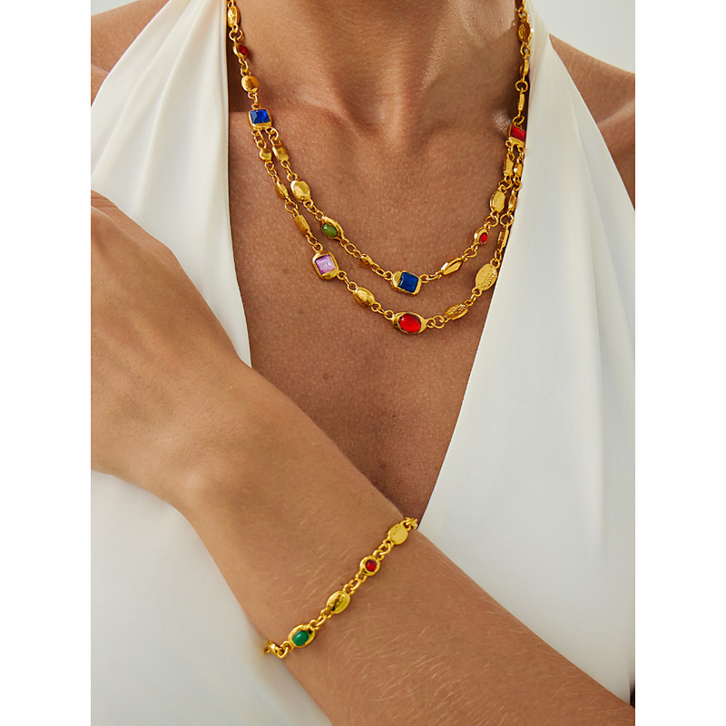 Women's Multicolor Gemstone Necklace and Bracelet Set - Elegant Gol...