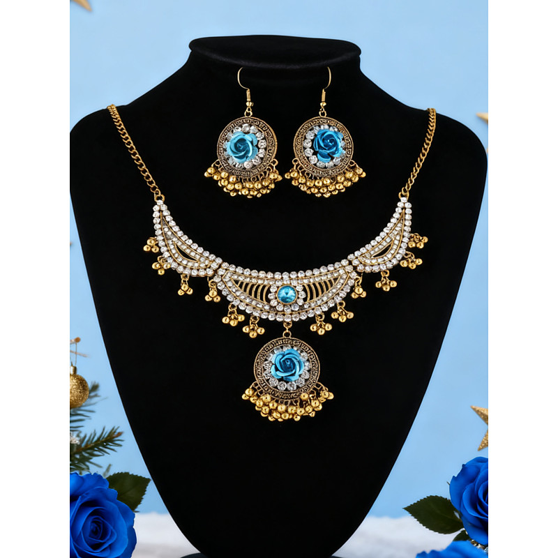 Women's Blue Pearl Choker Necklace and Earrings Set – Elegant...