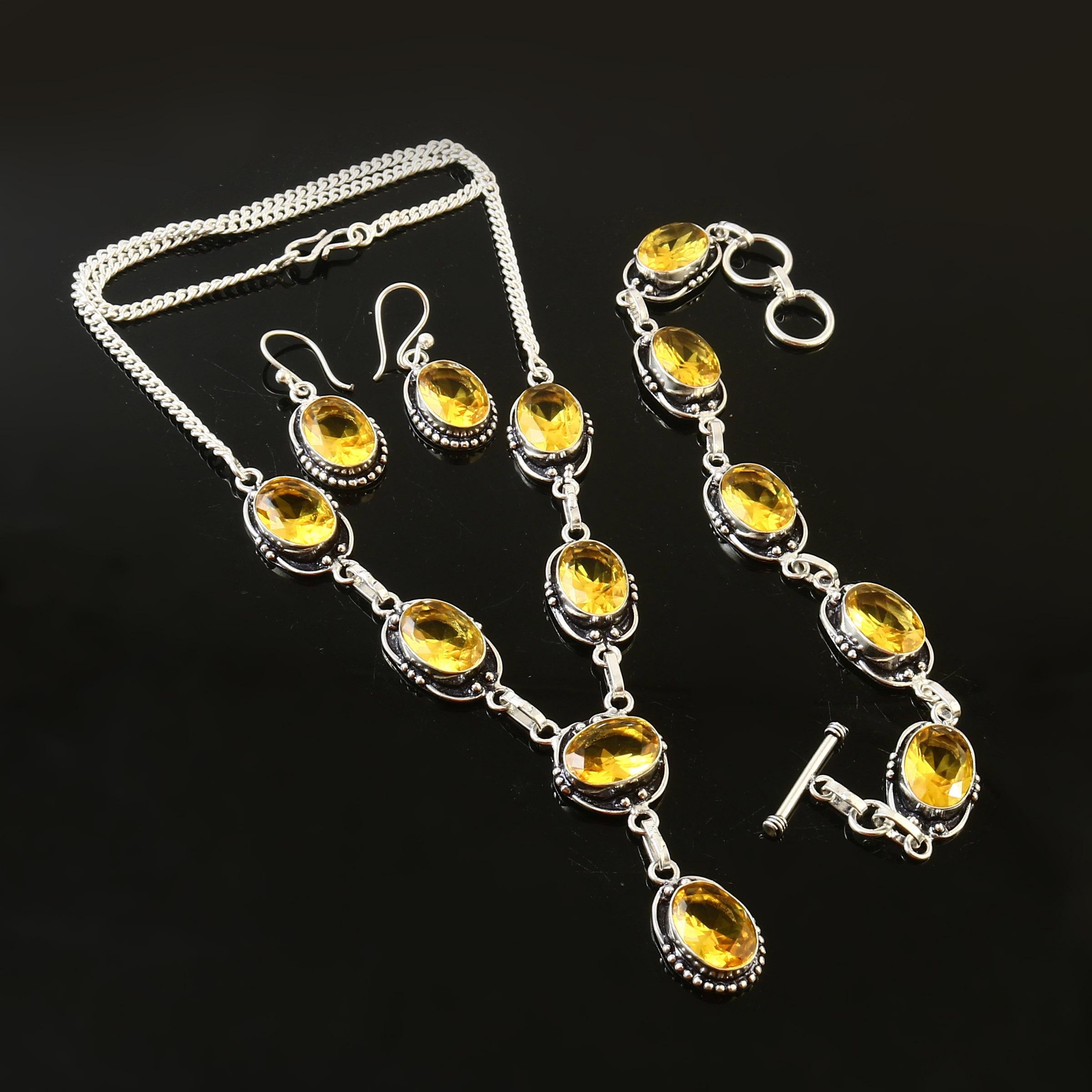 Citrine necklace bracelet earring set yellow gemstone set 925 starl...