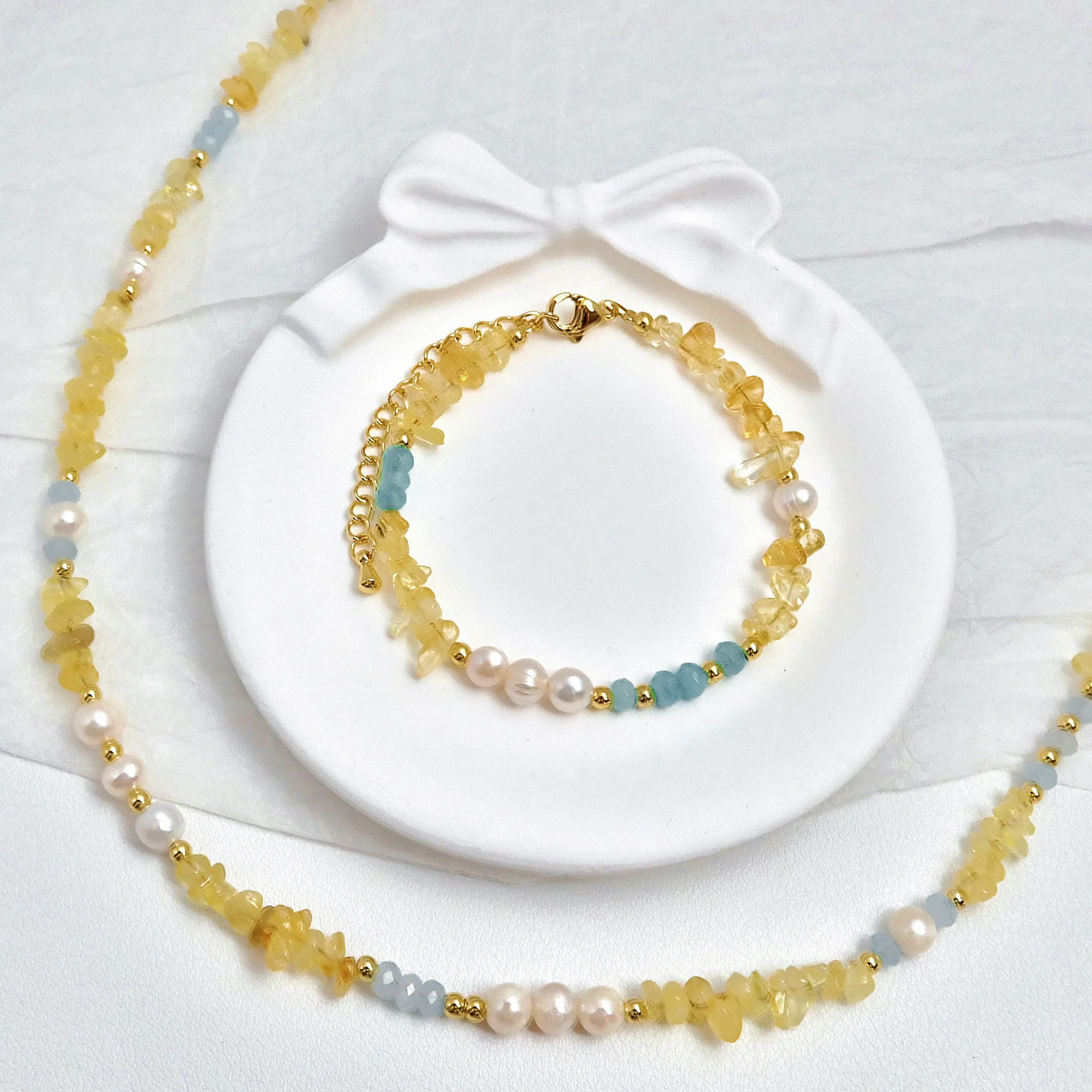 Natural Crystal Freshwater Cultured Pearl Bracelet Necklace Citrine...
