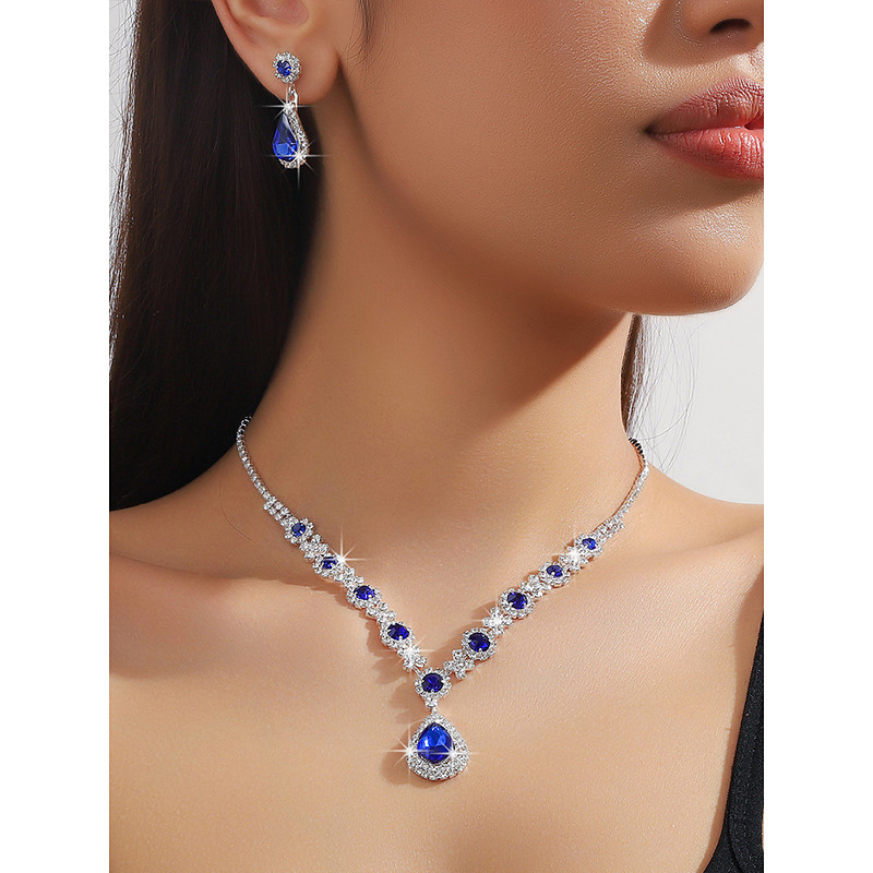 Luxury Women's Blue Crystal Necklace and Earrings Set - Elegant Bri...