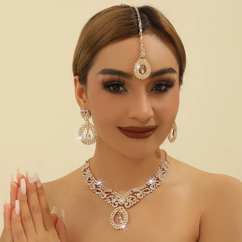 4PCS Women's Metal Jewelry Set Bollywood Jewelry Set Necklace Earrings Set Wedding Party Jewelry