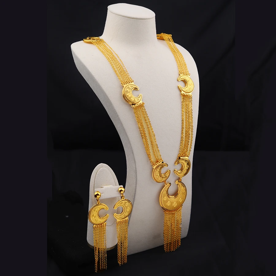 Trendy Nigerian Dubai Gold Color Jewelry Set For Women Tassel Long ...