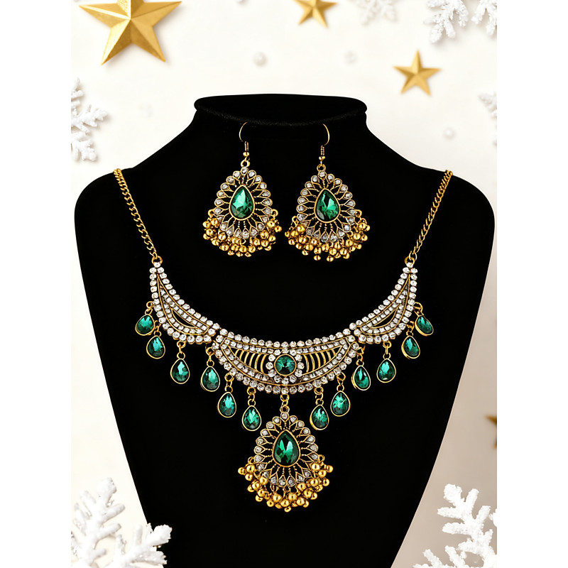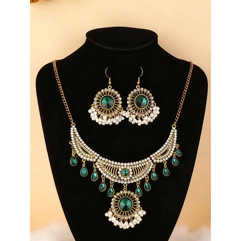 Women's Green Crystal Pearl Choker Jewelry Set for Christmas Party,...