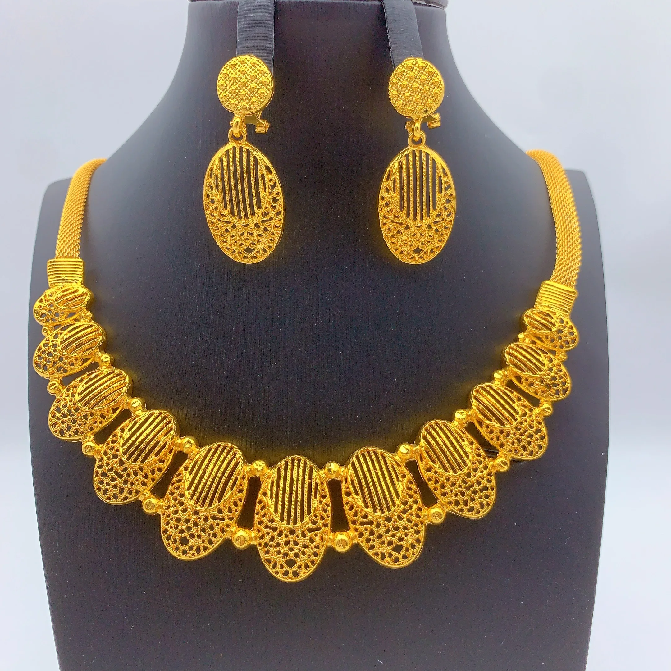 Dubai Jewelry 24K Gold Plated Bride Accessories Set Necklace Earrin...