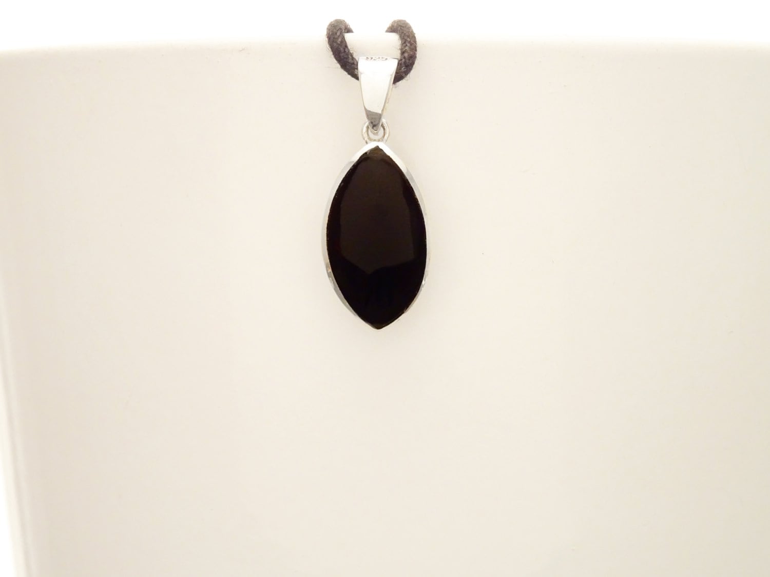 Black Oval Pendant - 925 Sterling Silver Pendant, Almond Shape, Bla...