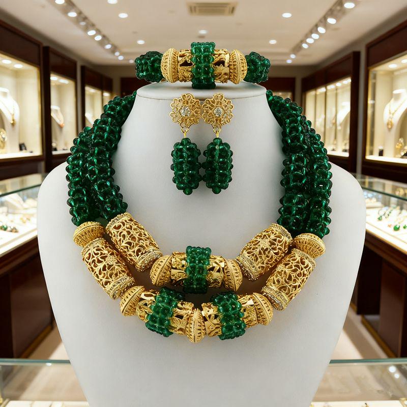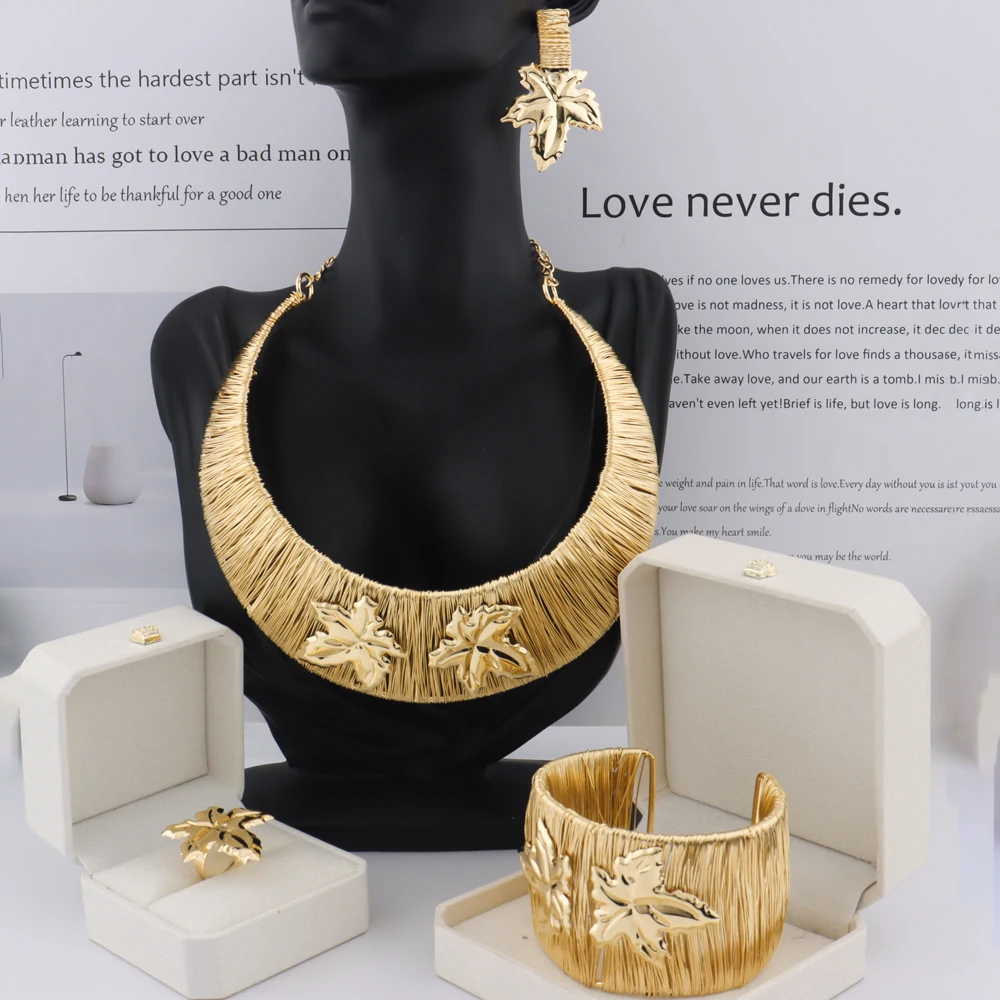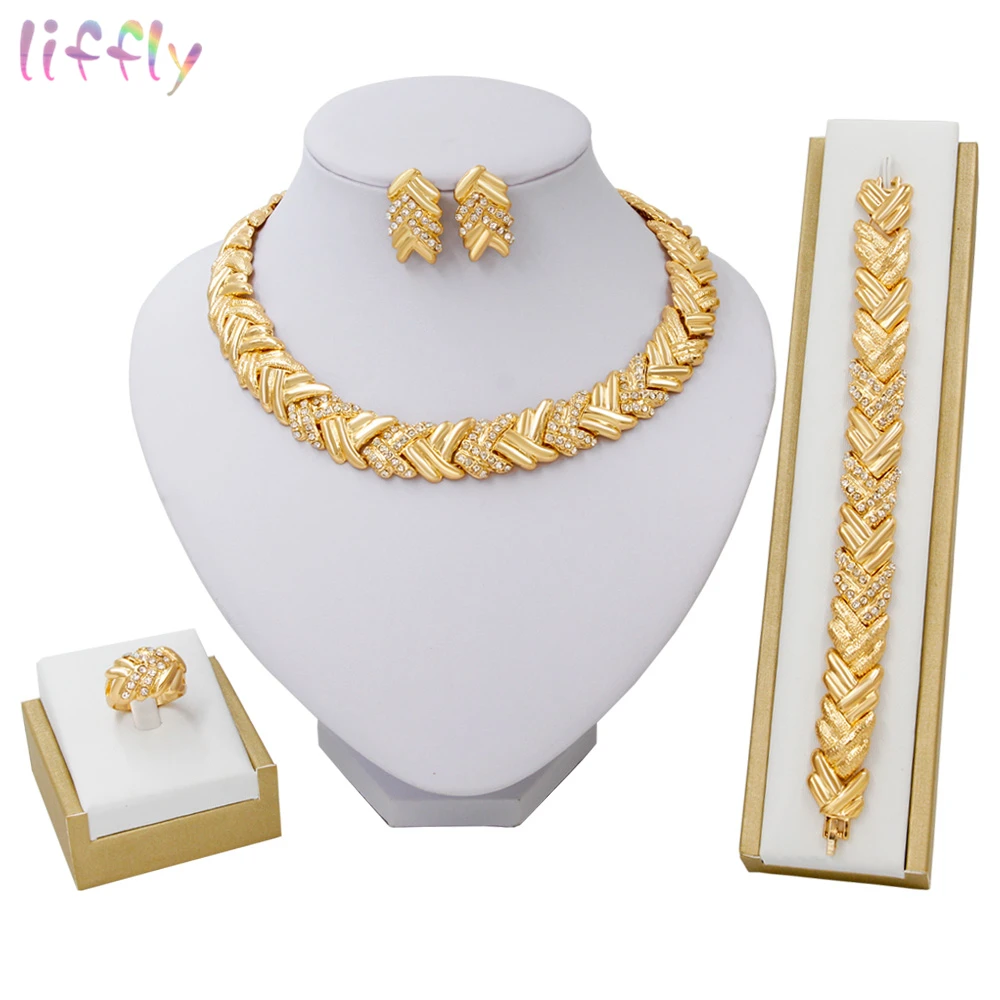 Color Jewelry Sets Necklace Earrings Ring Bracelet Dubai For Women Nigerian Indian Bridal Set Party ...