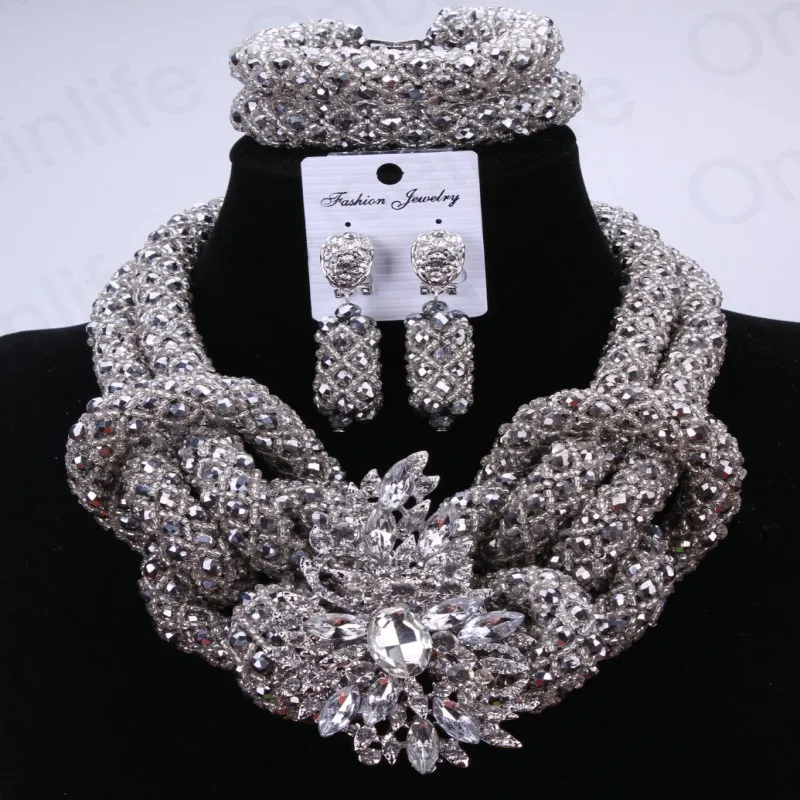Fashion Crystal Beaded African Nigerian Weddings Jewelry Sets
