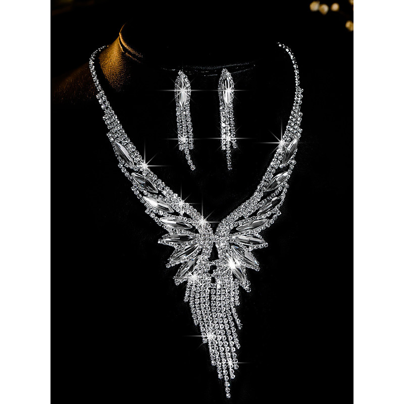 Women's Luxury Crystal Jewelry Set - Silver Plated Necklace and Dan...