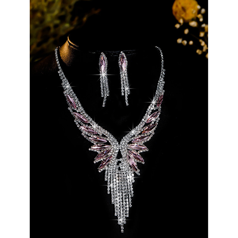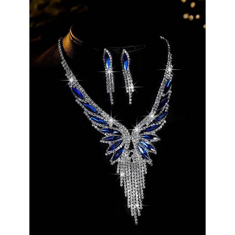 Women's Luxury Rhinestone Jewelry Set - Elegant Silver Necklace, Br...