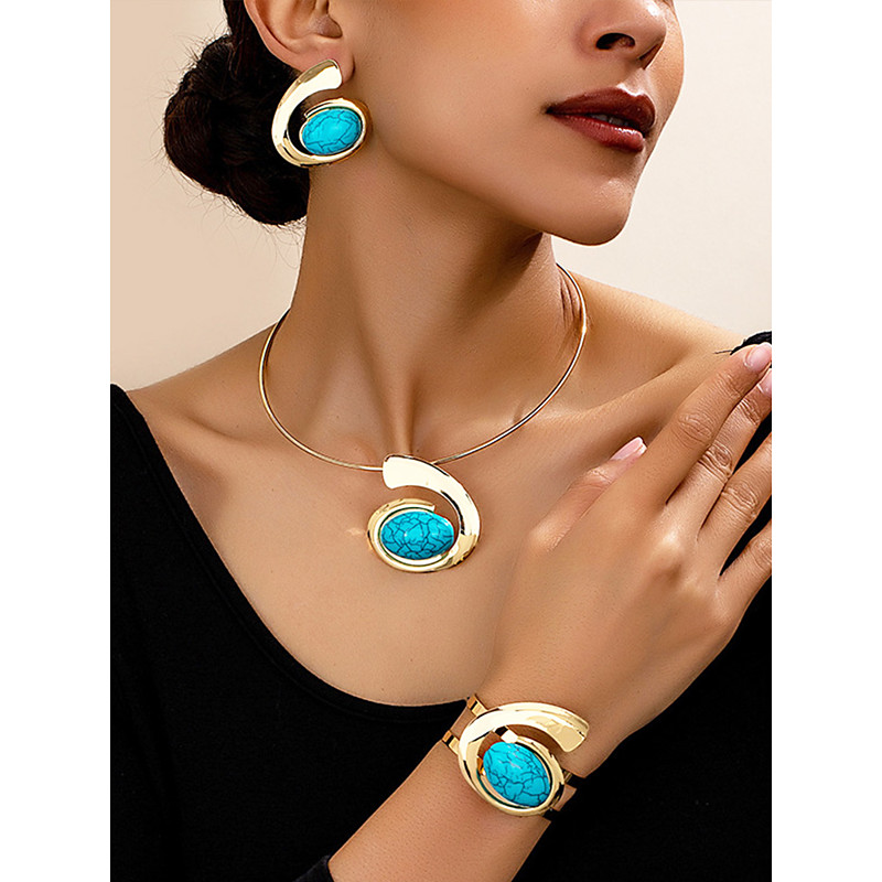Women's Bohemian Alloy Jewelry Set with Turquoise Stones – Ne...