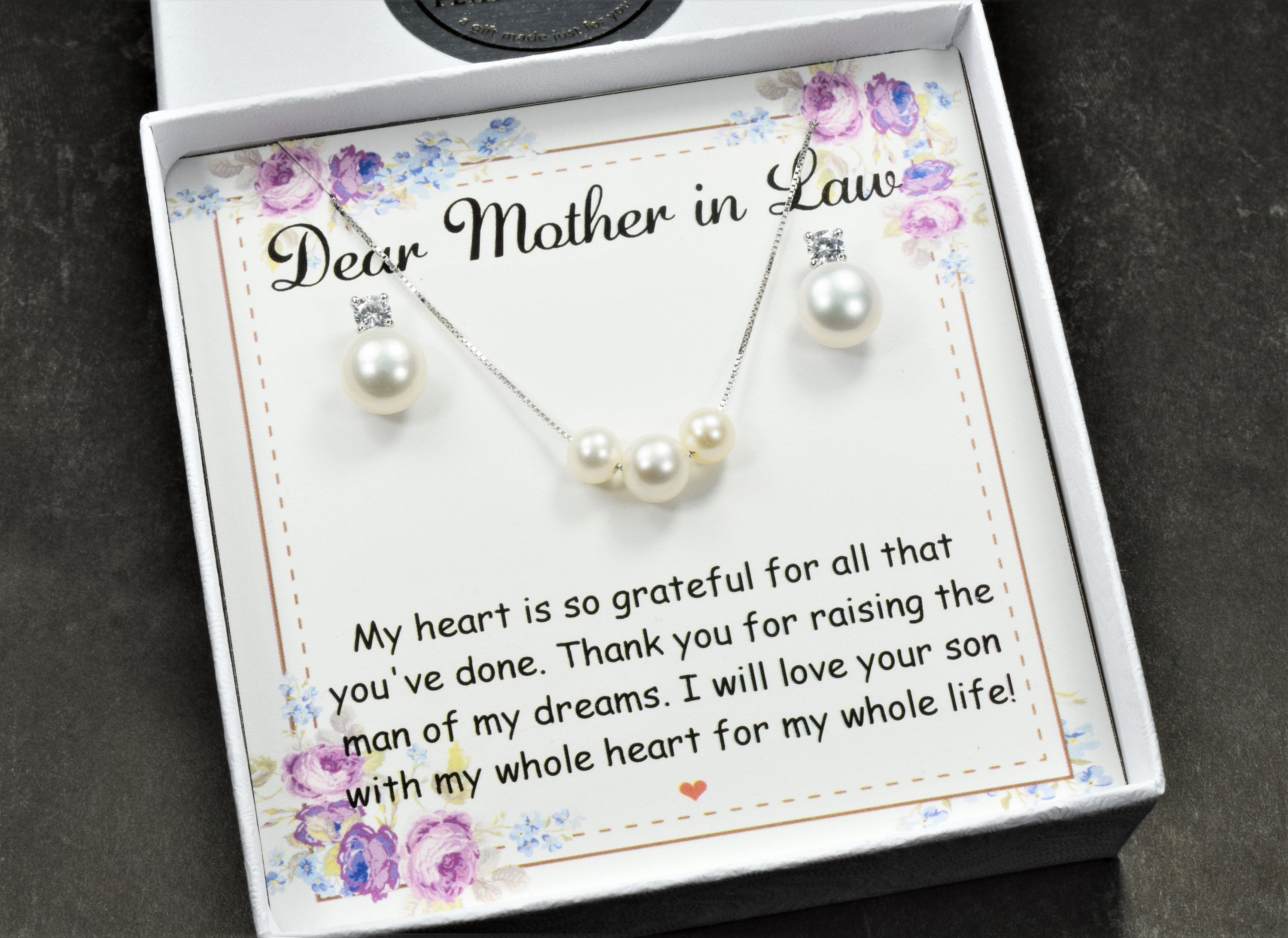 "Mothers Real Pearl gift SET To My Mother on My Wedding Day Mom Gift for Mother of The Bride Gi...