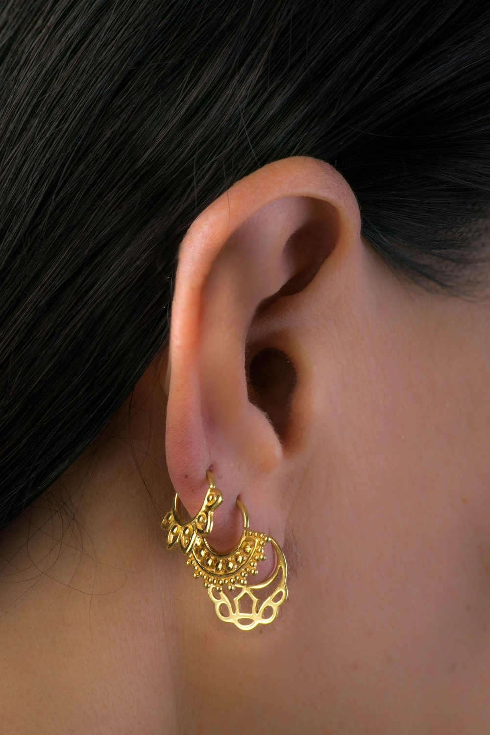 "Unique Tiny Gold Earring Set, Hoop Indian Style Helix Earrings, Hippie / Bohemian Small Earrin...