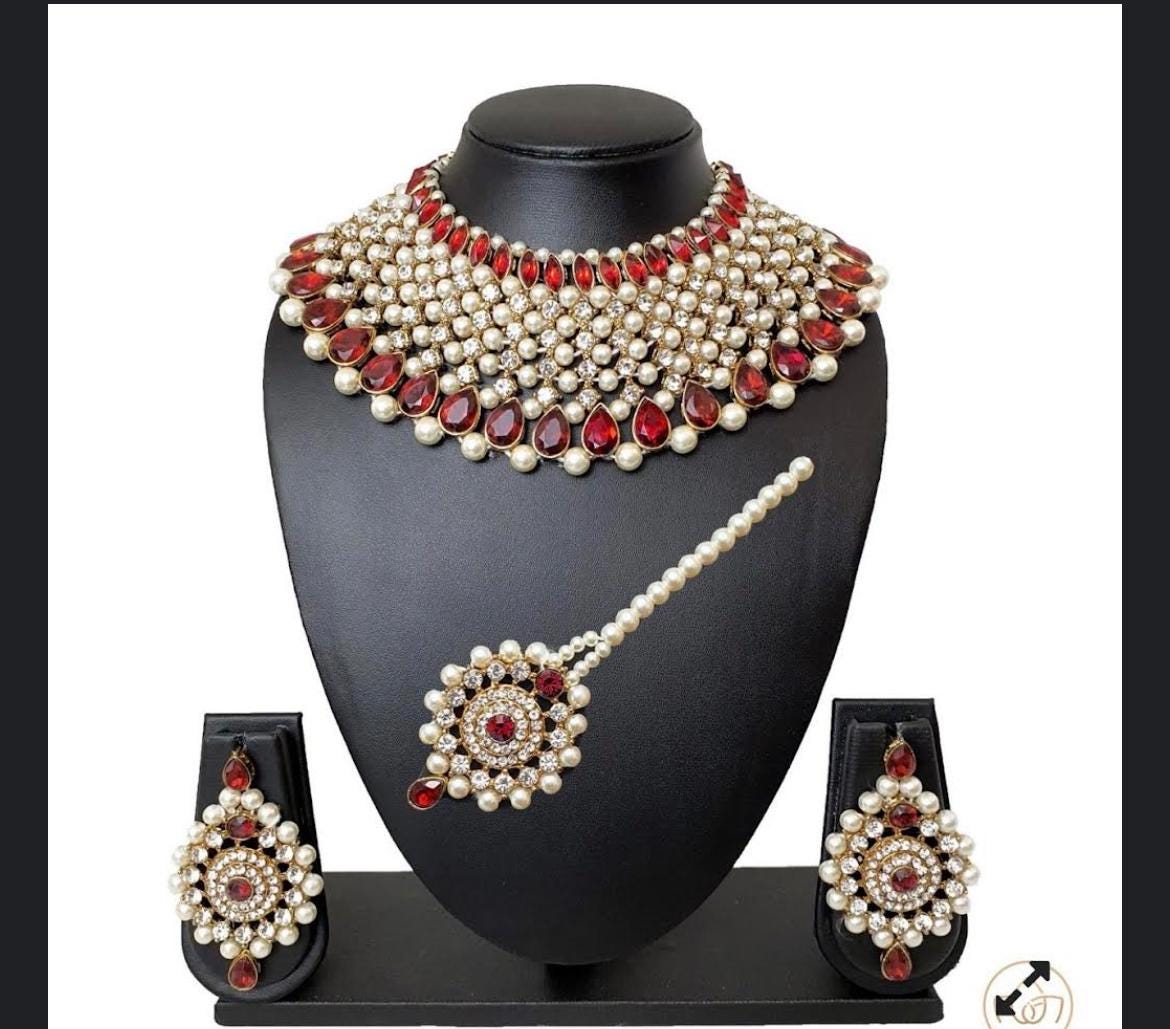 Indian Bridal Wedding Wear red Kundan Jewelry Set With Earrings Maa...