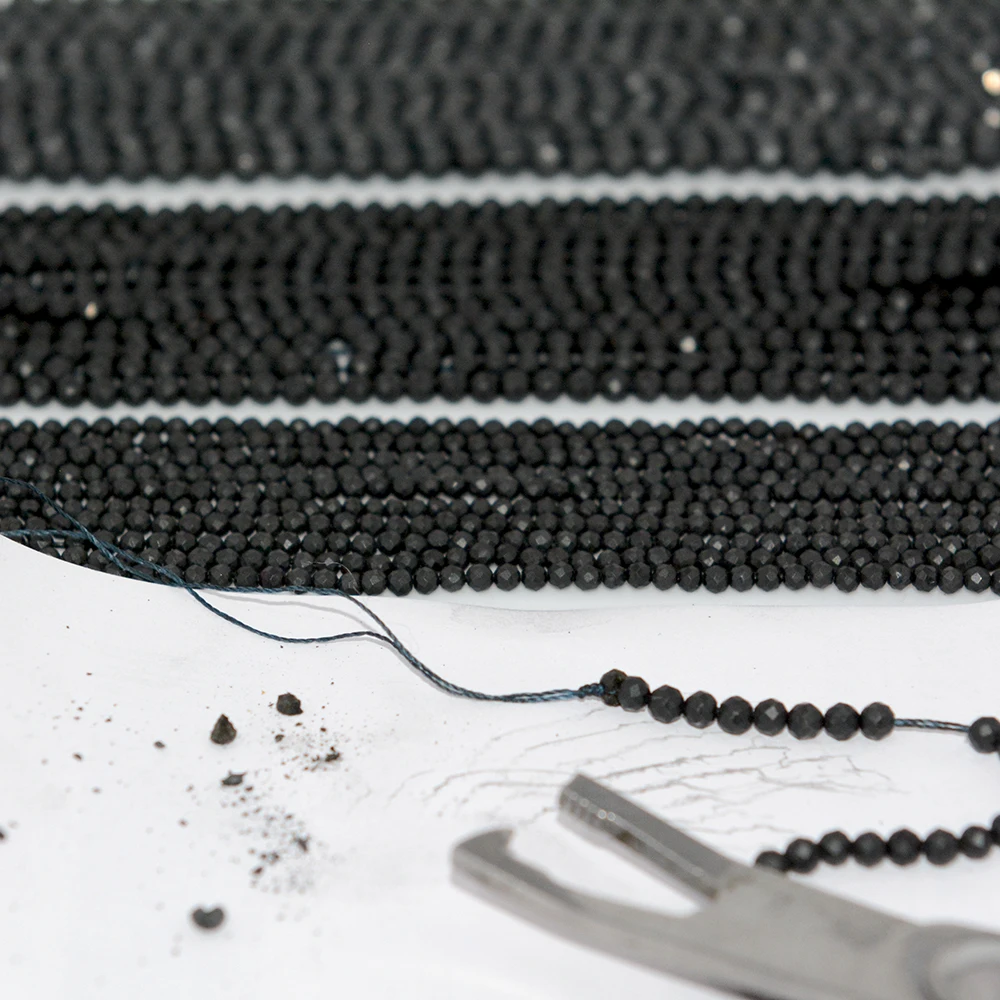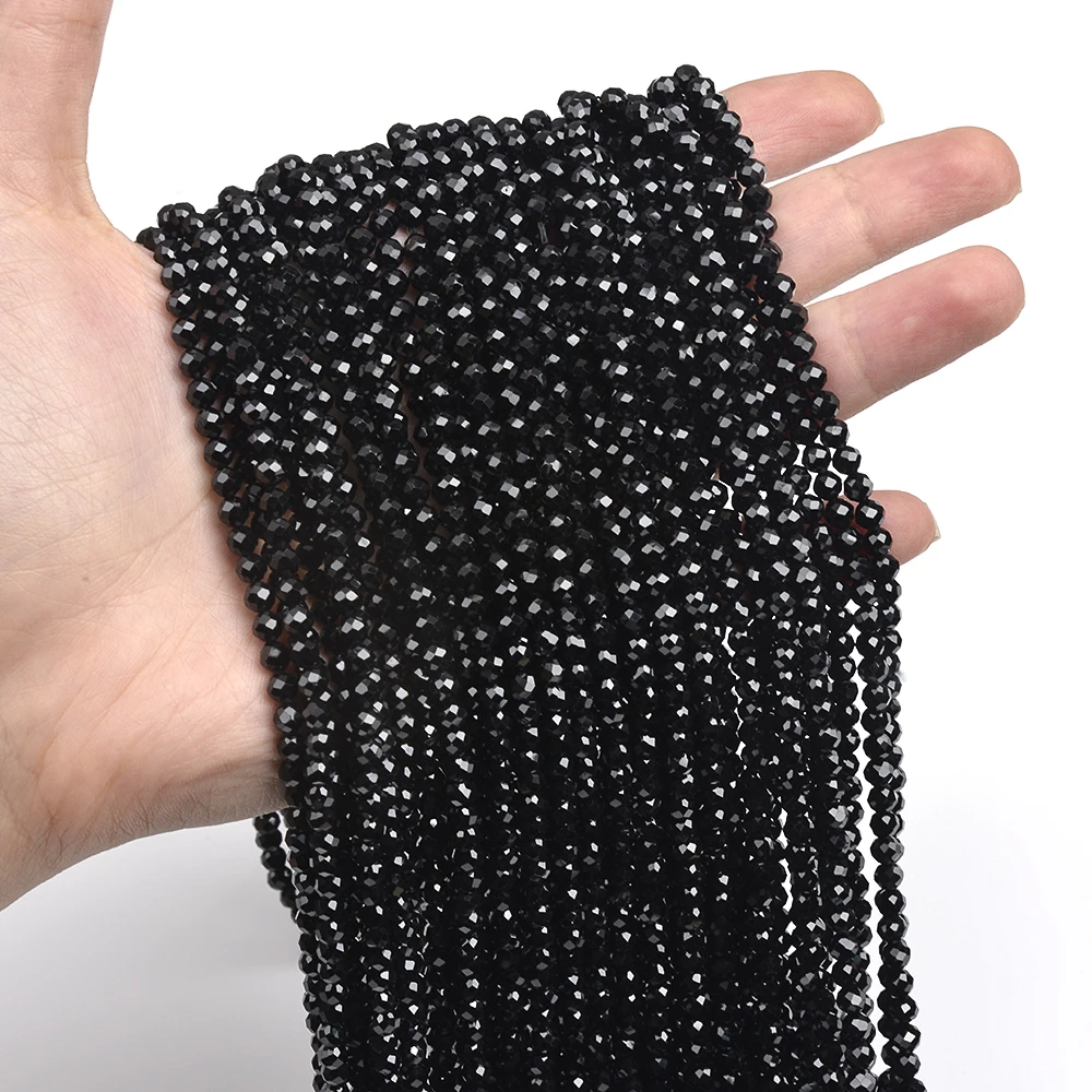 Natural Stone Faceted Black Spinel Wholesale Loose Round Beads 2/3/4MM For Jewelry Making Bracelet N...