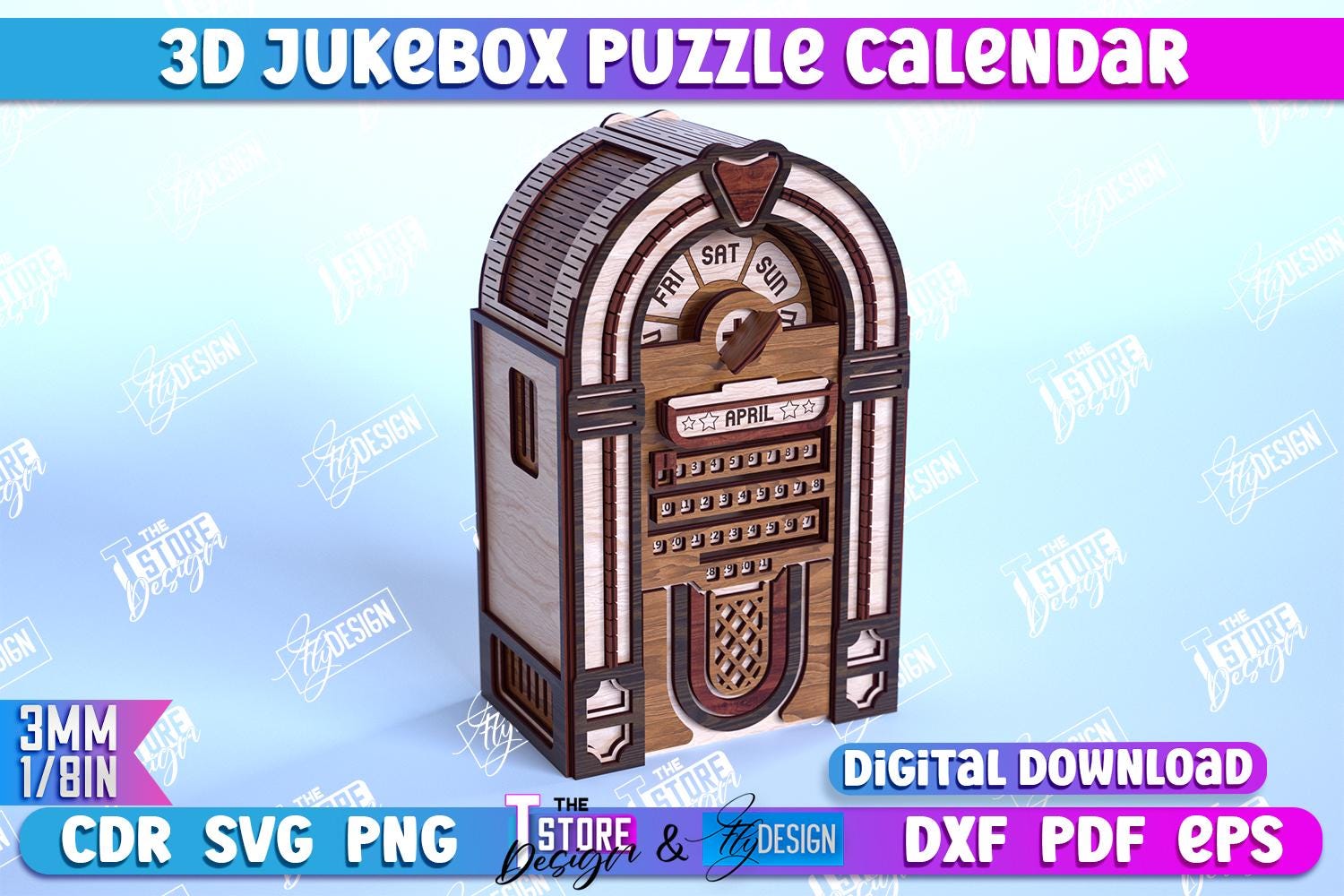 3d Wooden Puzzle Jukebox Calendar Laser Cut | Calendar Laser Cut | Perpetual Calendar Laser Design |...