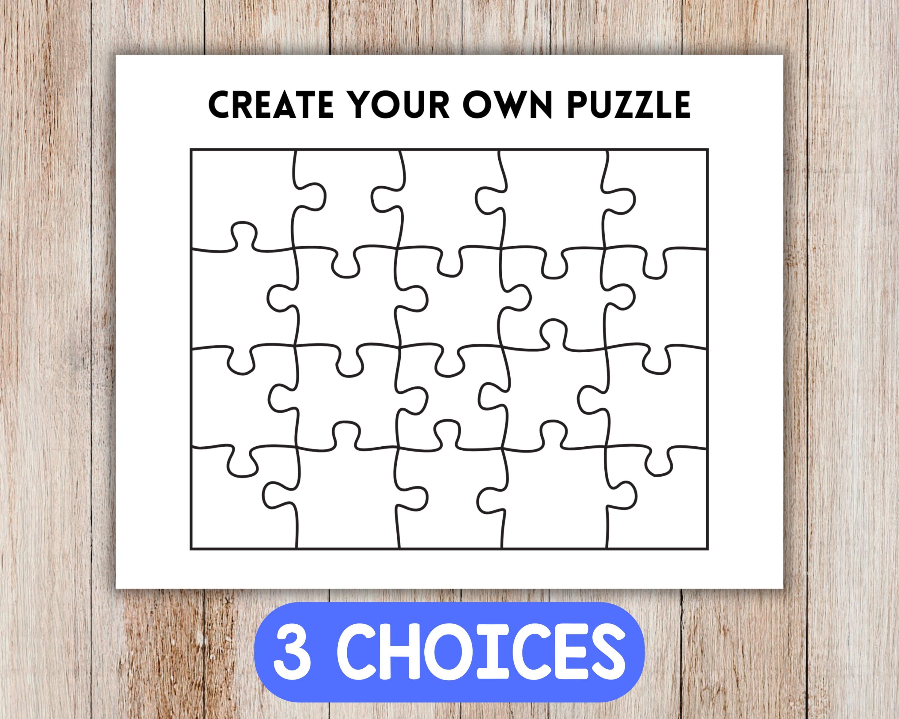 "Create your own custom puzzle with this fun printable set! You'll get three puzzle options--15...