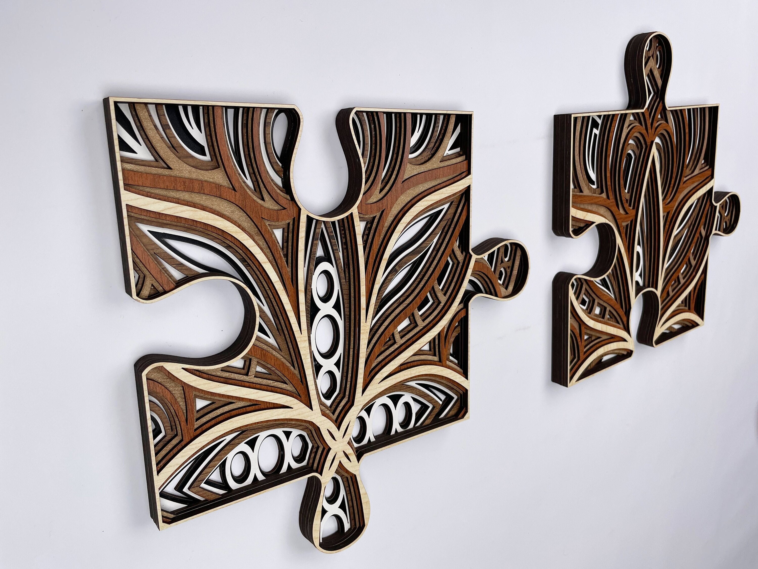 Wood Puzzle Wall Art Decor, Set of 2 Puzzle Pieces Wall Art, 3D Lay...