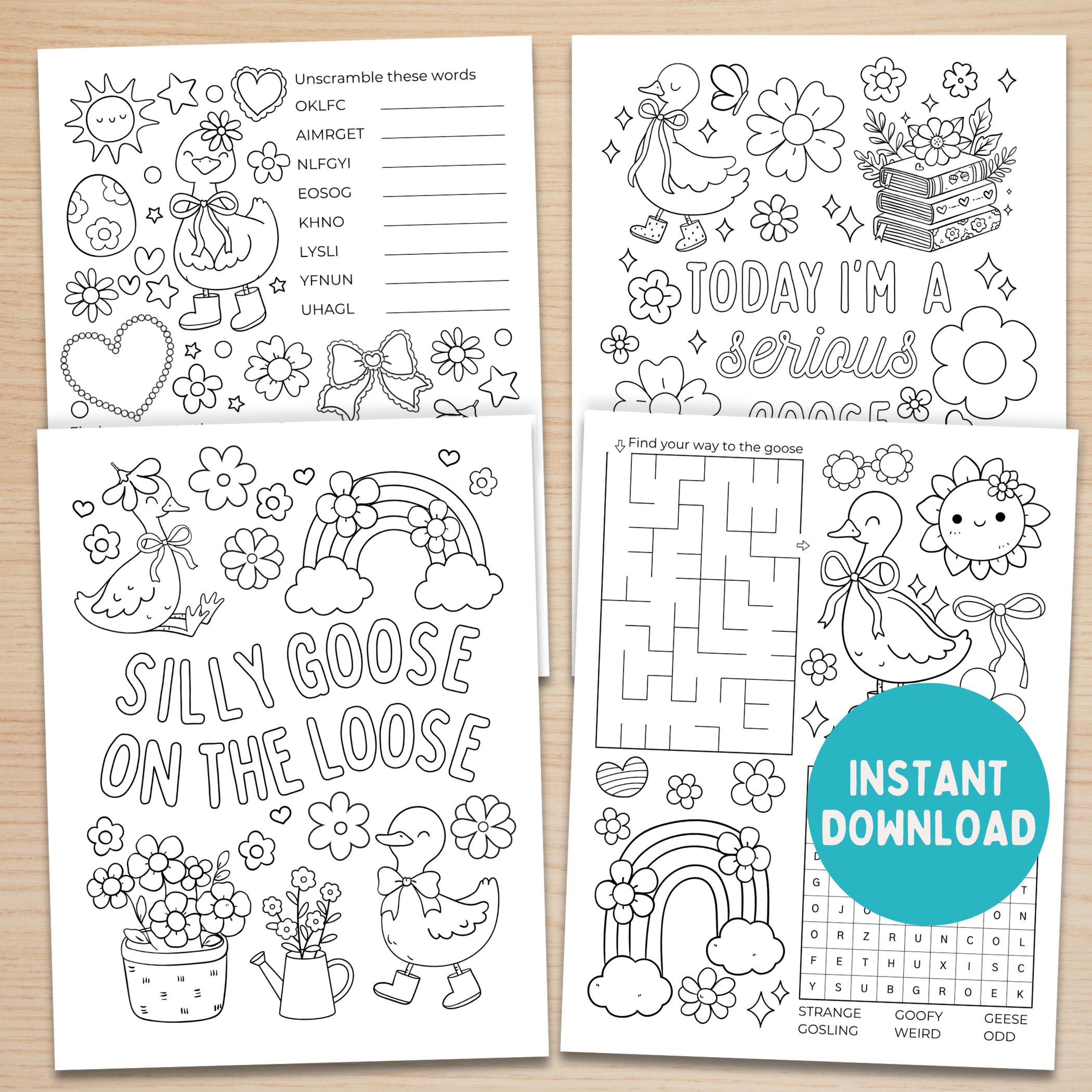 Silly Goose Coloring Pages, Silly Goose Activity Pack, Summer Activ...