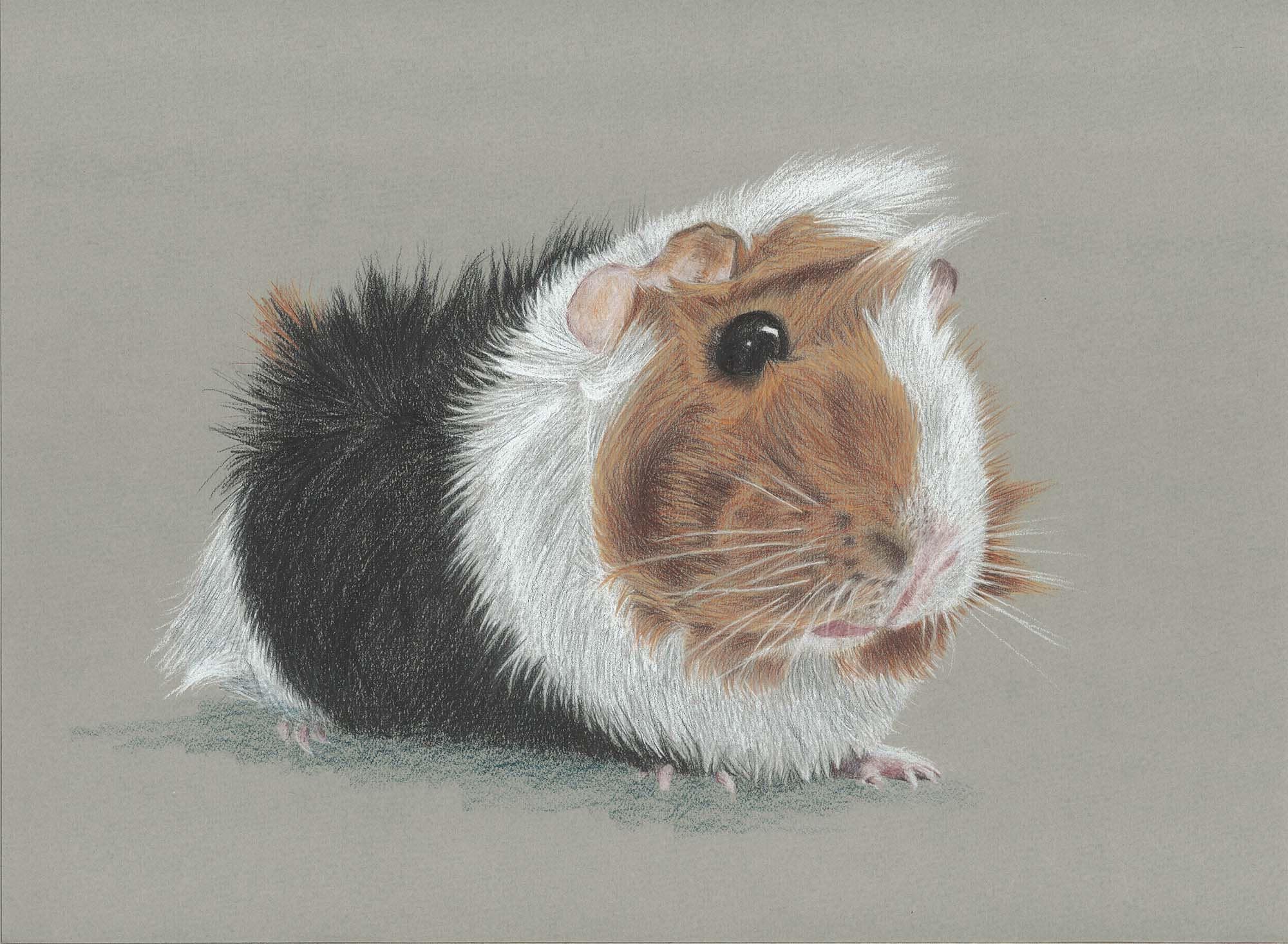 • Guinea-pig, guinea-pigs, pencil drawing, colour pencils, art print,...