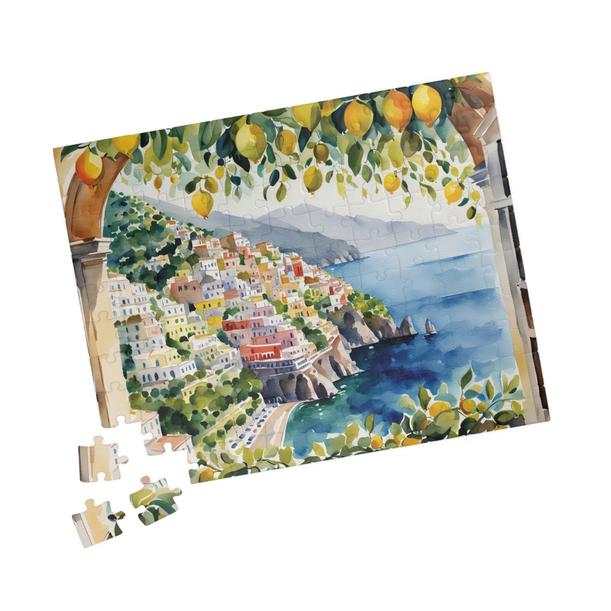 JIGSAW PUZZLE Jigsaw Puzzle | Amalfi Coast Positano Italy, Watercolor Travel Gift (110, 252, 520, 10...