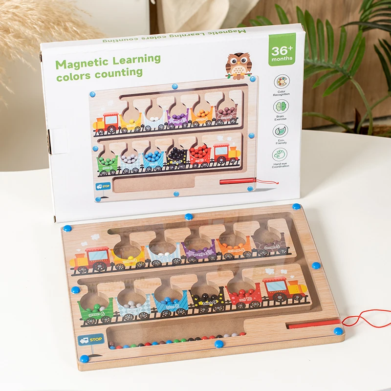 Wooden Fun Montessori Magnetic Puzzle Counting Busy Board Toddlers ...