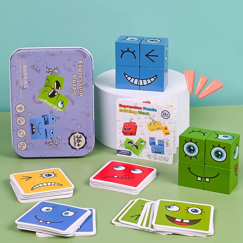 Kids Face Change Expression Puzzle Building Blocks Montessori Cube ...