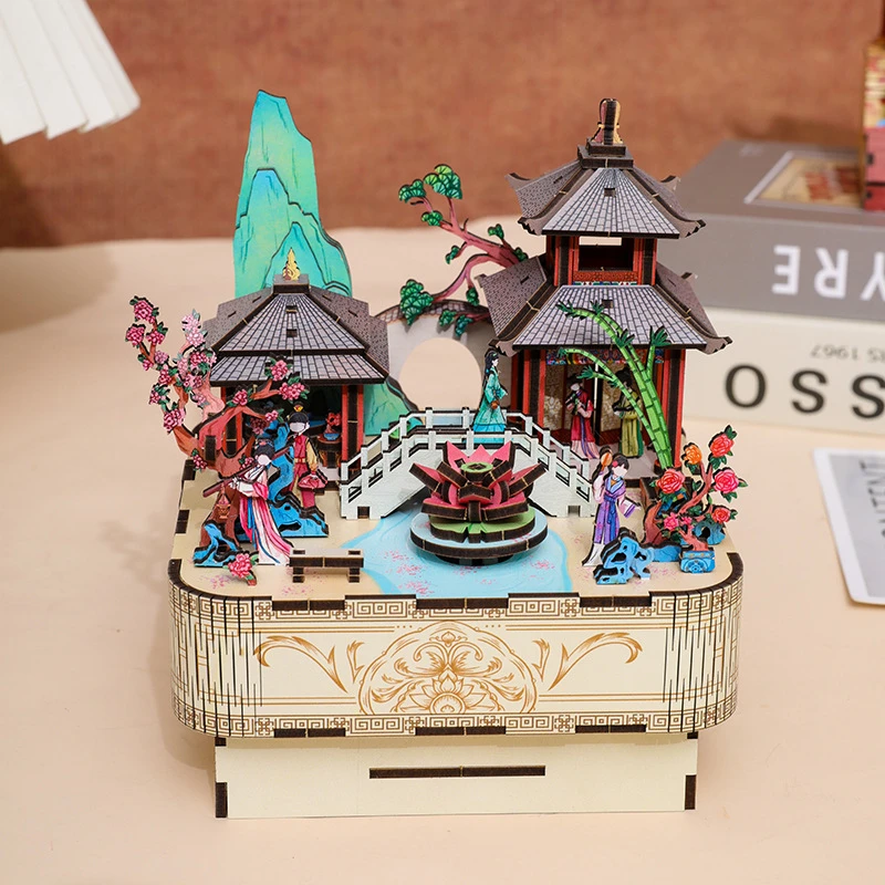 DIY 3D Wooden Dream of the Red Chamber Music Box Miniature Model Kits Jigsaw Puzzles Can Move for Fr...
