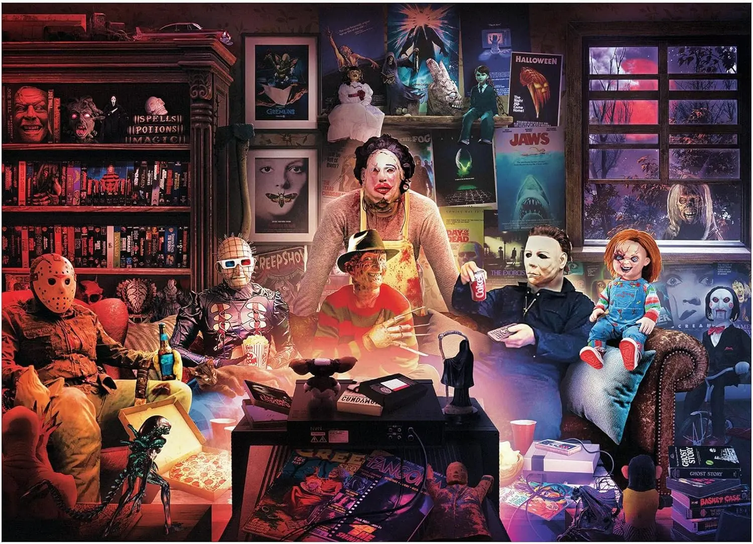Jigsaw Puzzles for Adults 1000/1314/500/300pcs Horror Night Watch Party Wooden Puzzle for Gameroom B...