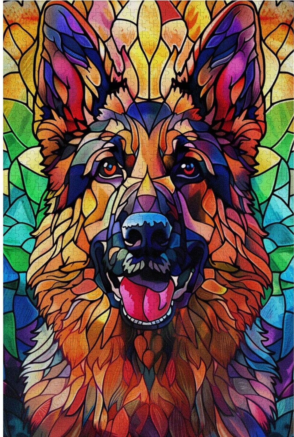 German Shepherd Stained Glass Jigsaw Puzzle,Dogs Lover Gift,Photo P...