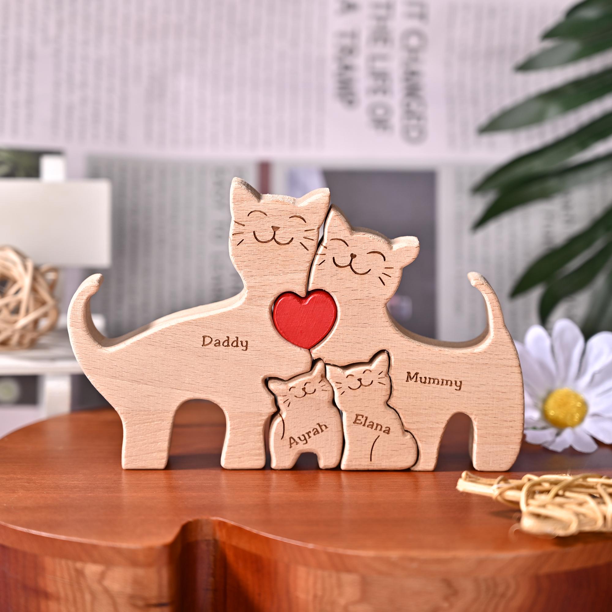 "Personalised Wooden Cat Family Puzzle - Handcrafted Keepsake Create a lasting memory with our ...