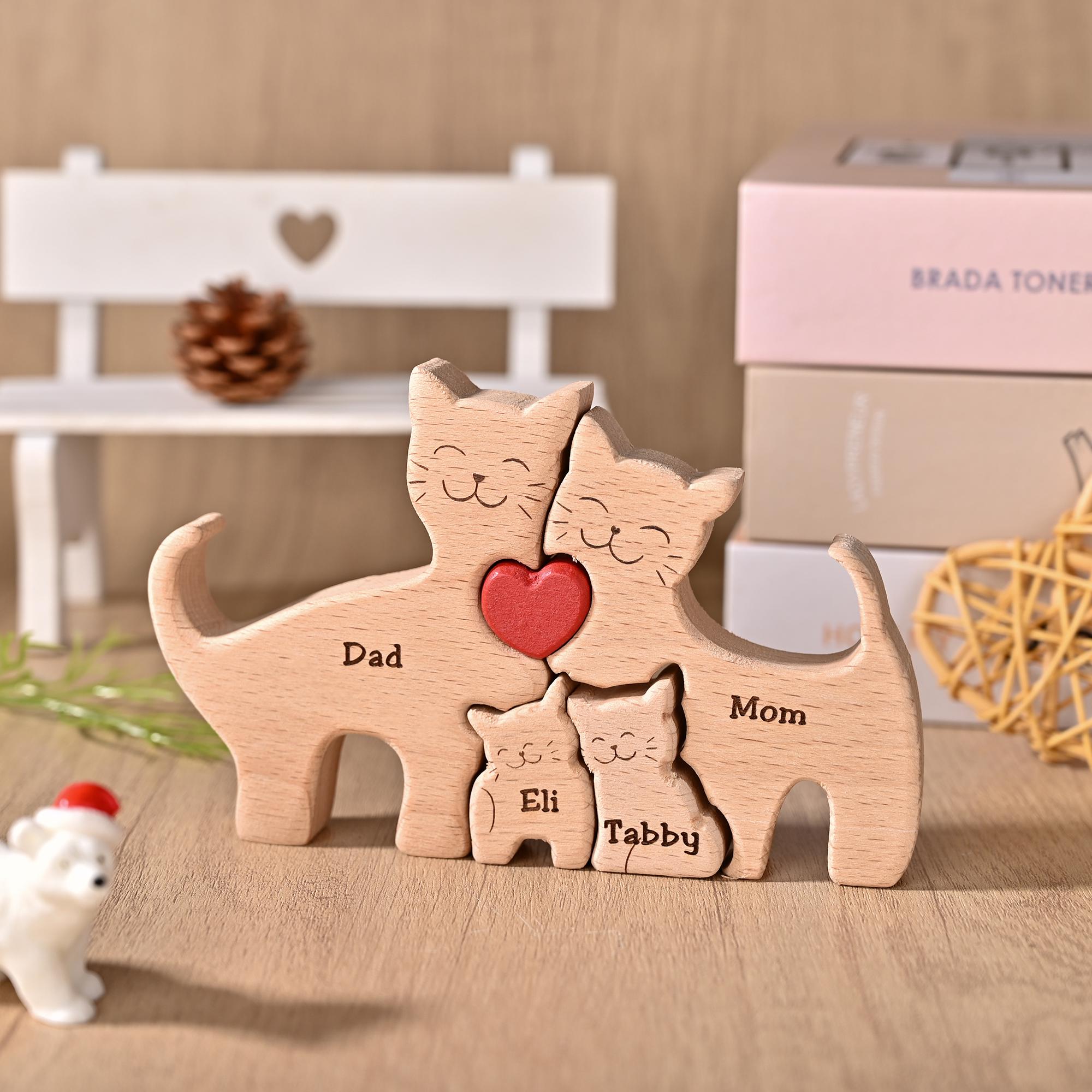 Personalized Wooden Cat Family Puzzle, Cat Family Crafts, Handmade ...