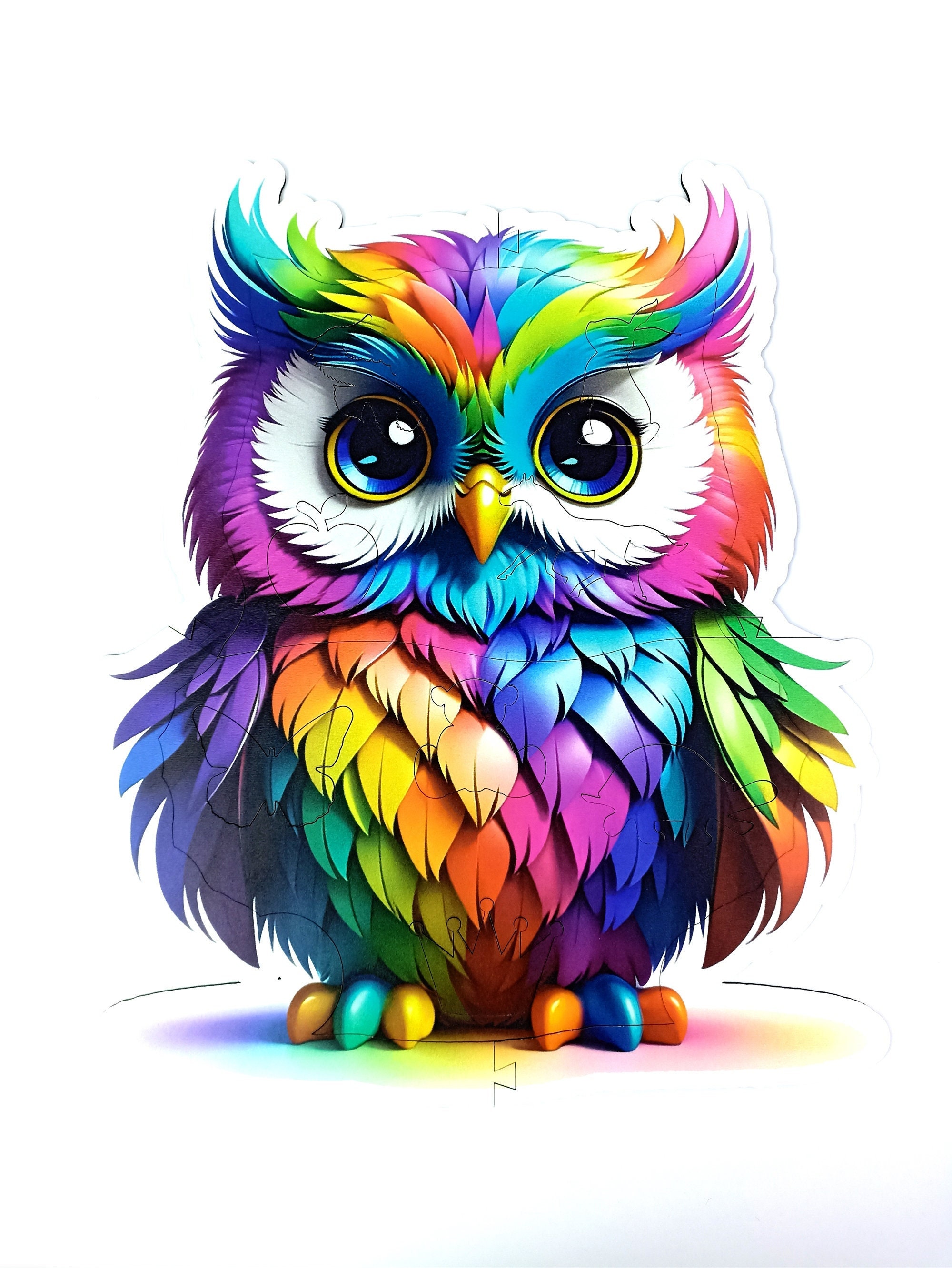 Hoo's ready for a puzzling adventure? A Hoot of Many Colors is a vibrant wooden jigsaw puzzle featur...
