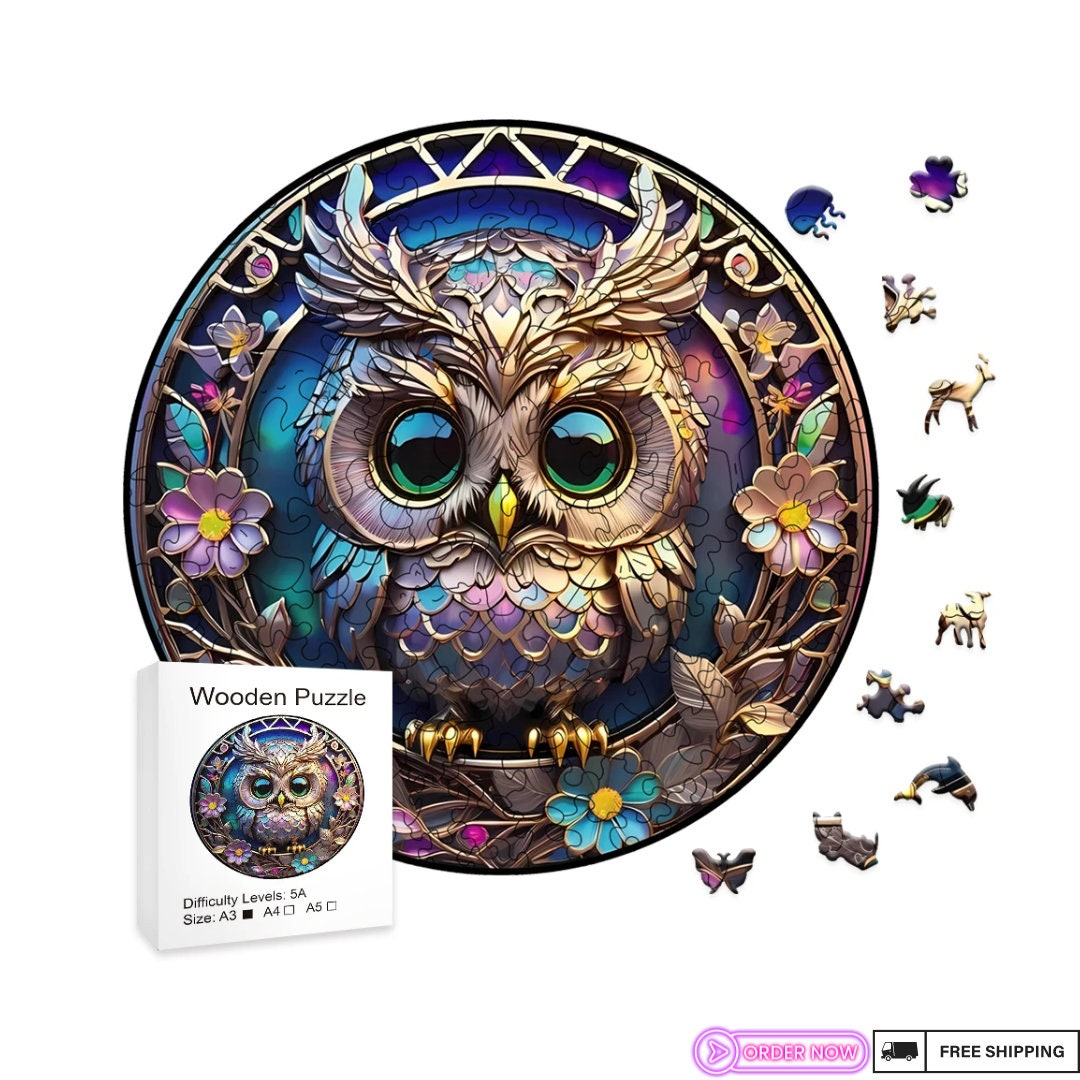 Wooden Owl Puzzle: Intricate Animal Jigsaw Artwork