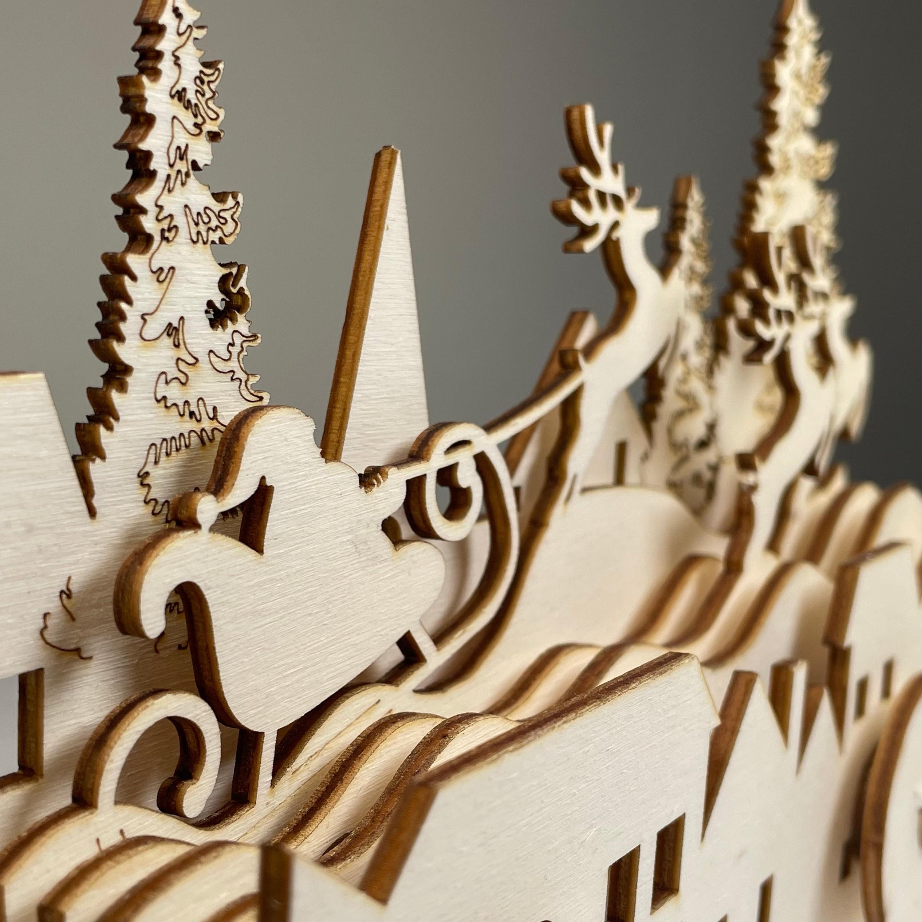 Mechanical Santa Sleigh Model by Curious Rabbit, Flat Pack Wooden C...