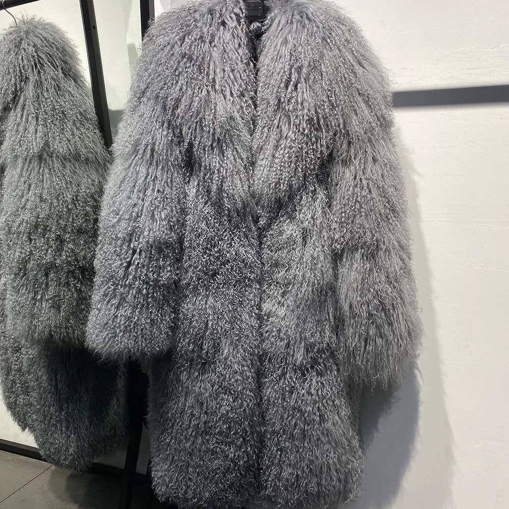 2026 Winter Fluffy Gray Sheep Fur Coat Women Lamb Fur Gray Coat Lon...