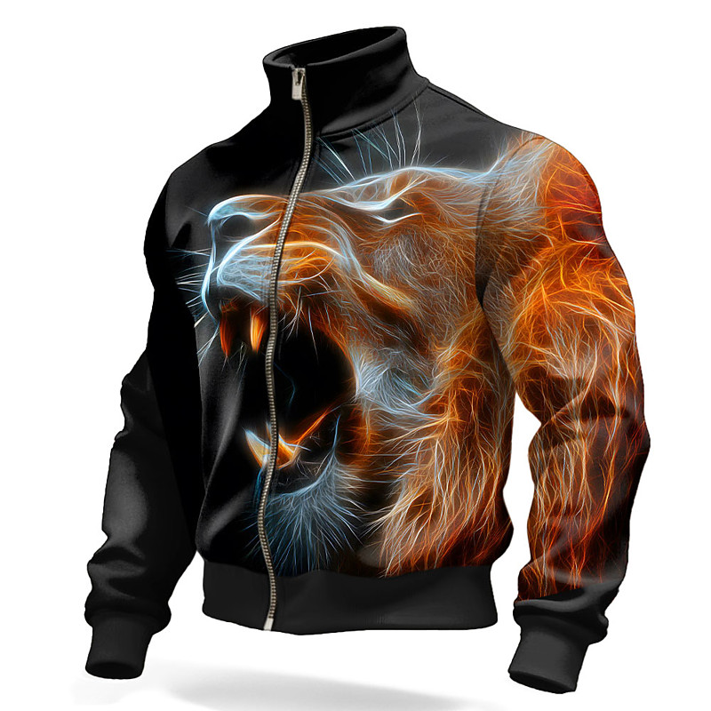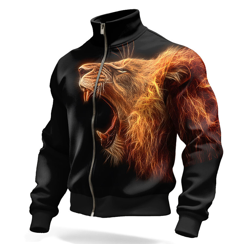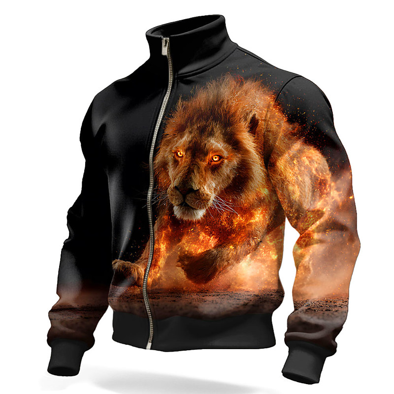 Men's Lion Flame Jacket Sweatshirt Cool Daily Fantasy Tactical Stan...