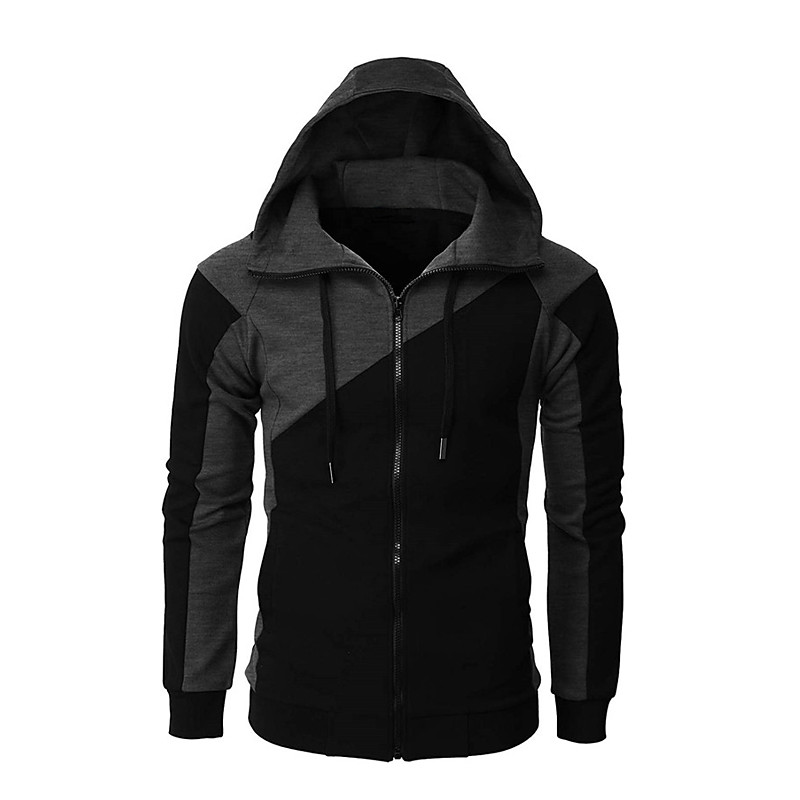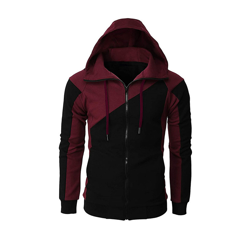 Men's Full Zip Hoodie Sweat Jacket Jacket Black White Wine Red Blue...