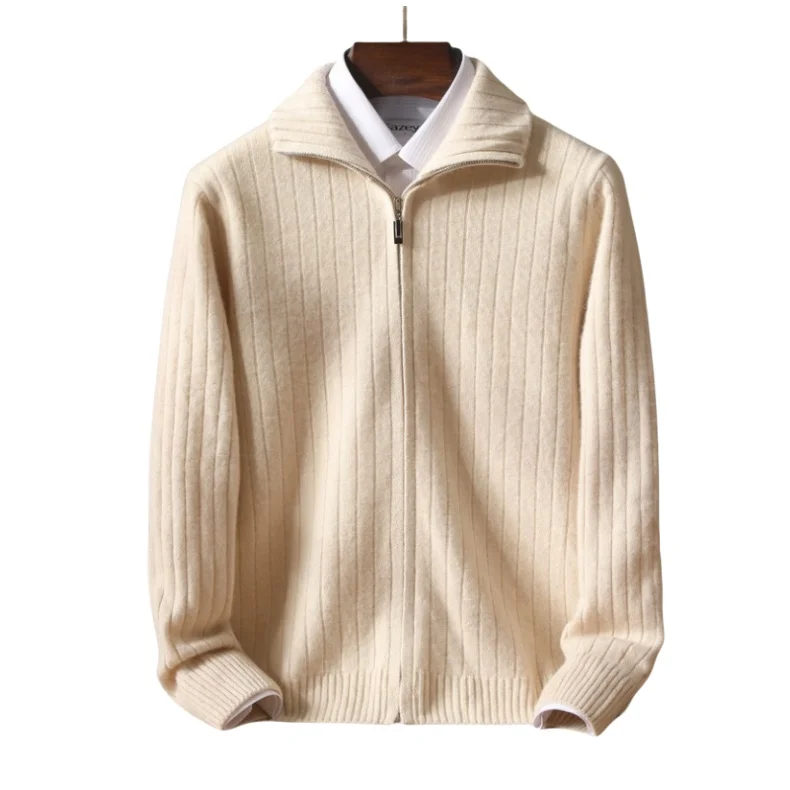Custom Logo Oem Winter New 100% Pure Wool Men's Full Zip Thick Knit...