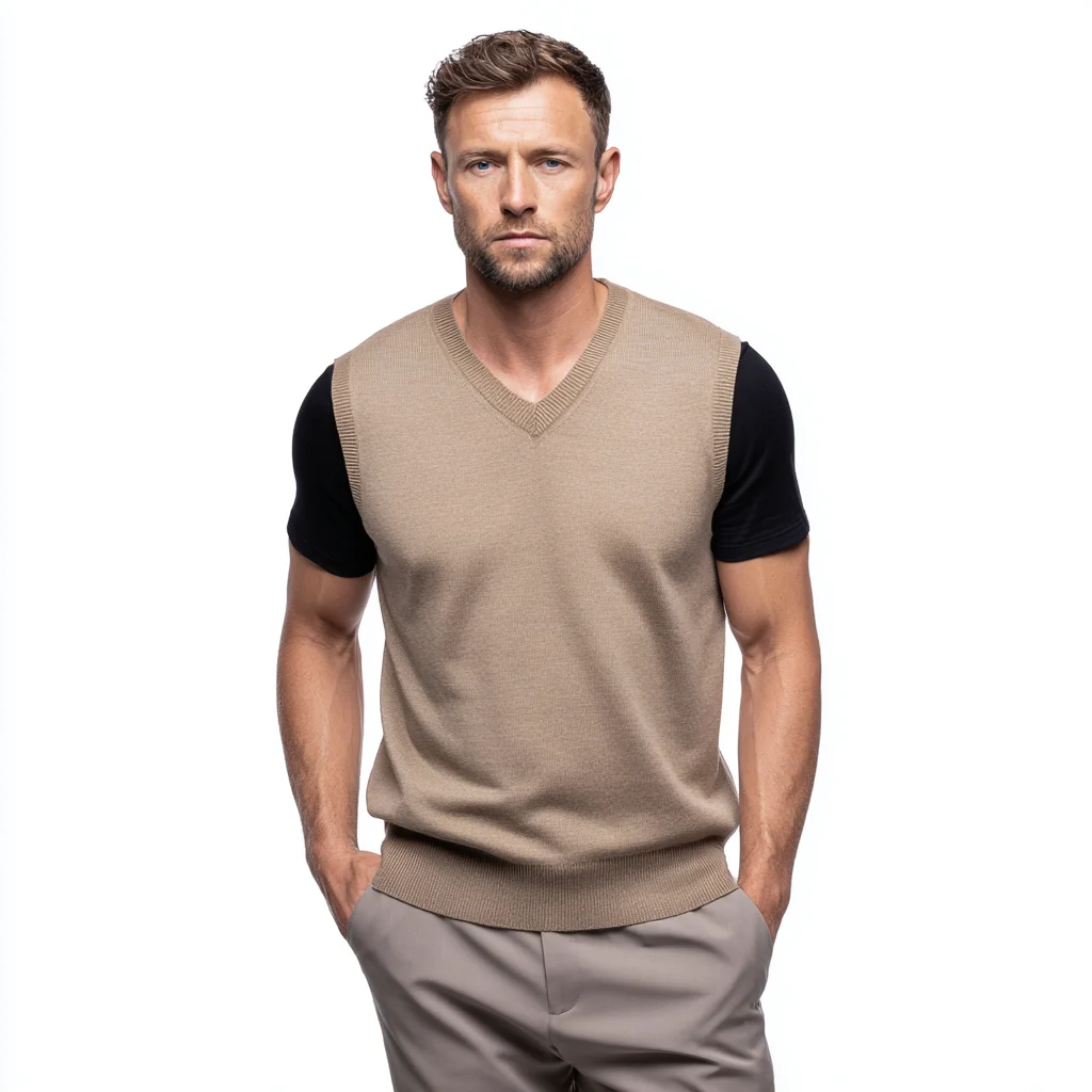 Preppy Luxe Men's Cashmere-Blend Golf Vest V-Neck Sweater Vest