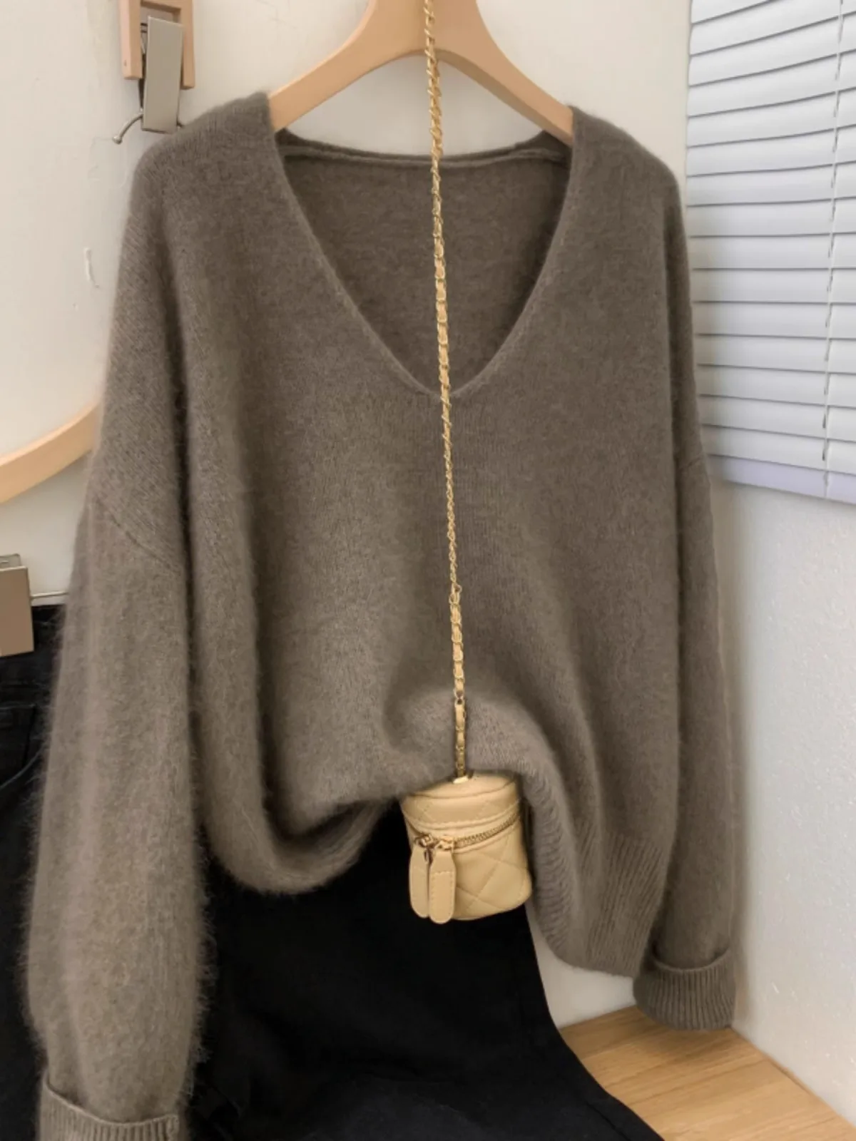 A sense of class! Yangqi Soft Waxy 100 pure cashmere knitwear autumn and winter V-neck Korean loose ...