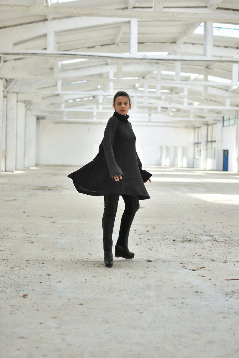 "Black Wool Winter Sweater, Turtleneck Winter Tunic Dress Stylish and chic fashion is our share...