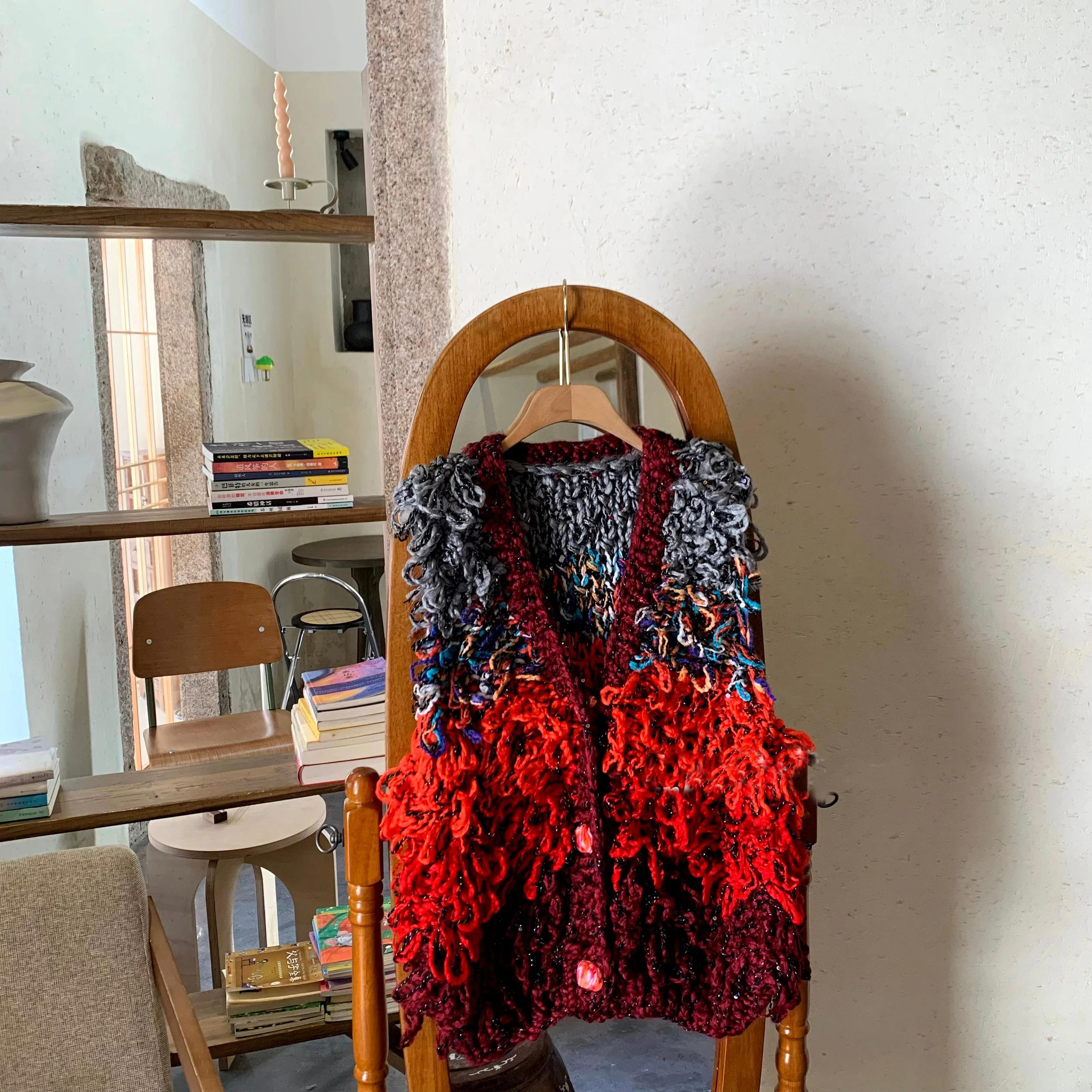 Handmade Chunky Knit Fringe Vest Colorful Oversized Sweater Boho Chic Cottagecore Knitwear Dopamine ...