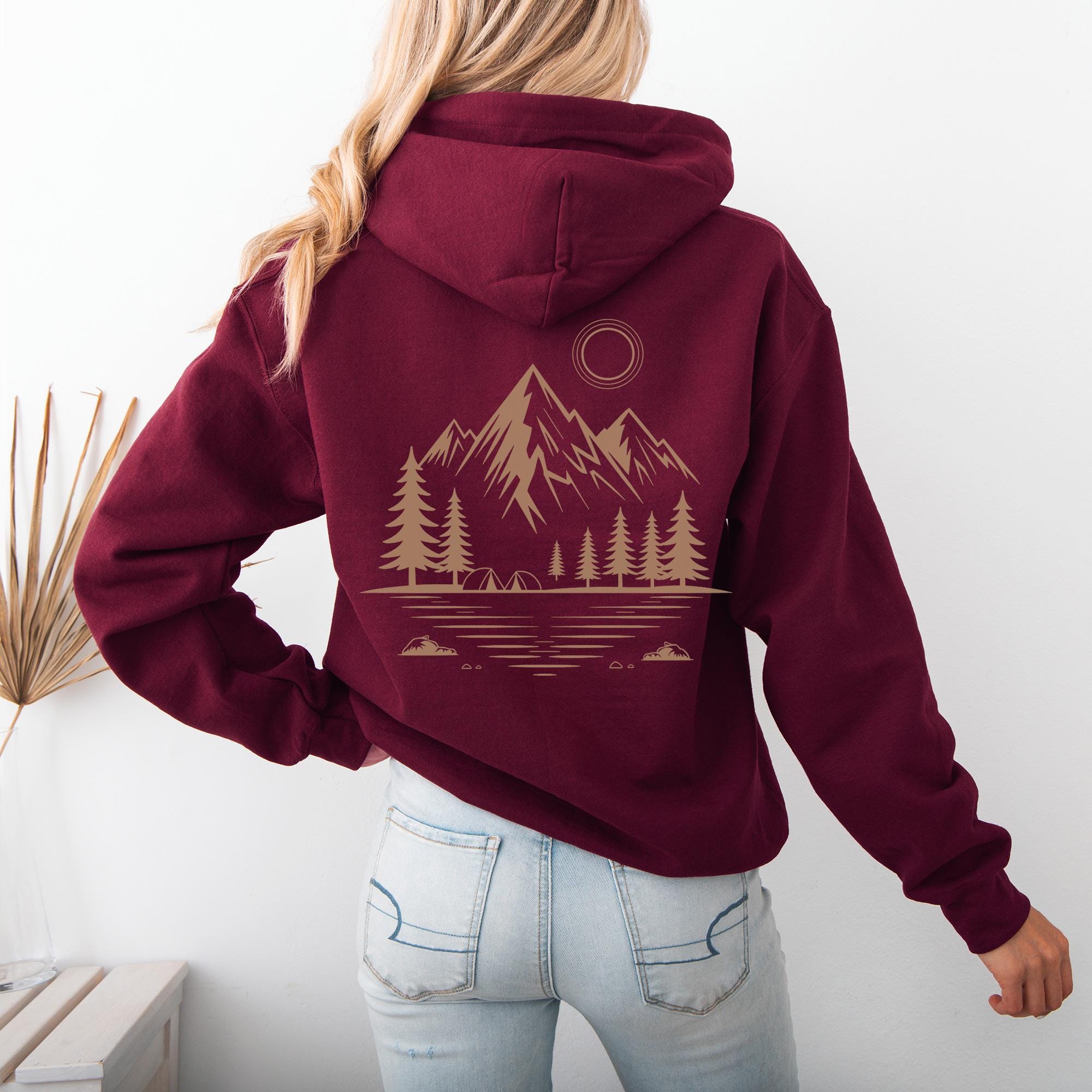 Mountain Line Art Hoodie * Minimalist Nature Back Print * Adventure...