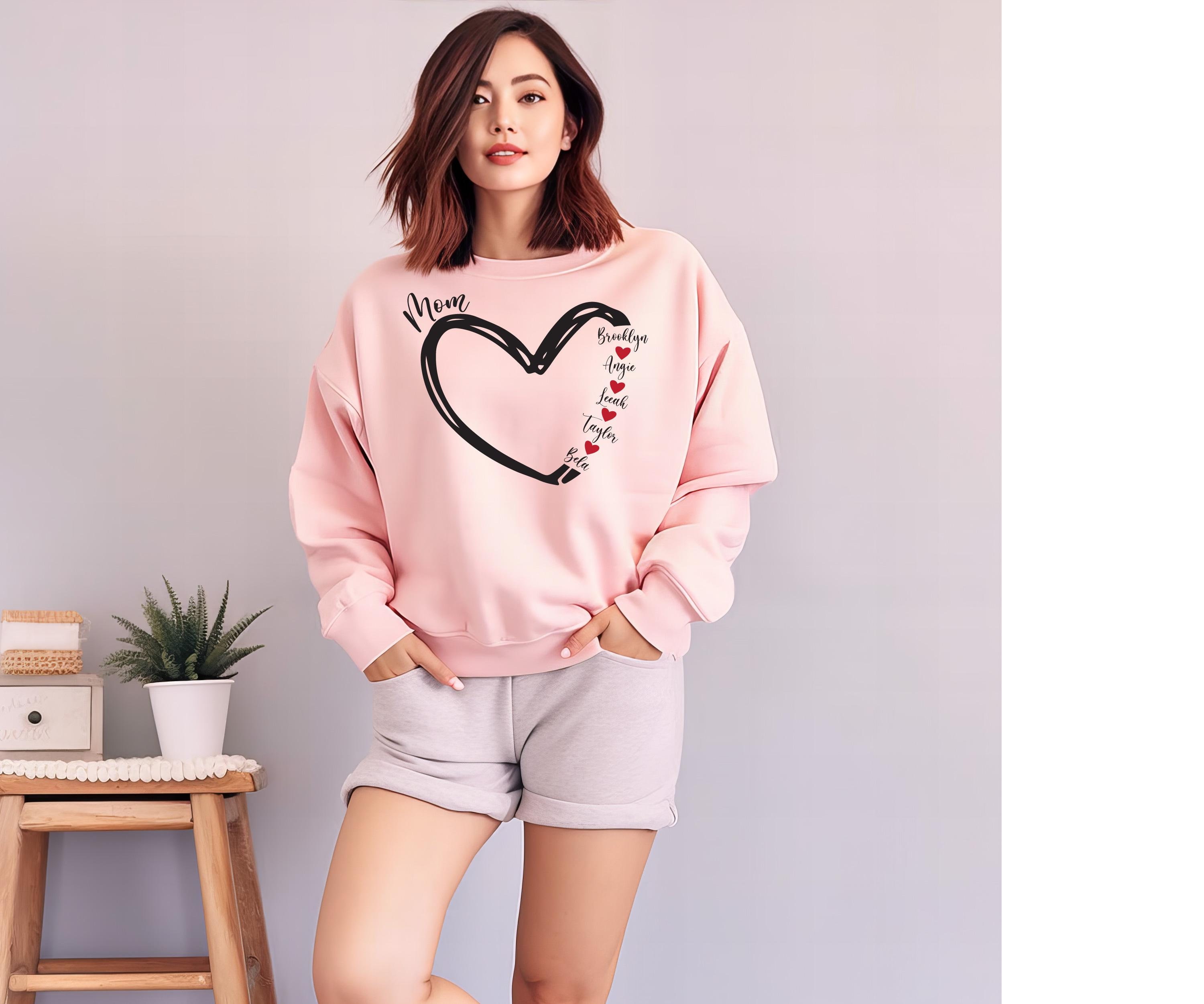 Personalized Mum Heart Sweatshirt, Custom Mama Jumper, Mother's Day...