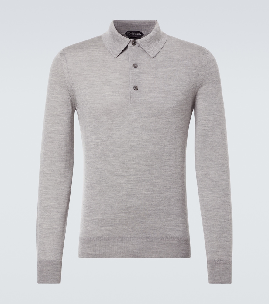 Tom Ford Men, Cashmere and silk polo sweater, Grey, UK 46, Knitwear